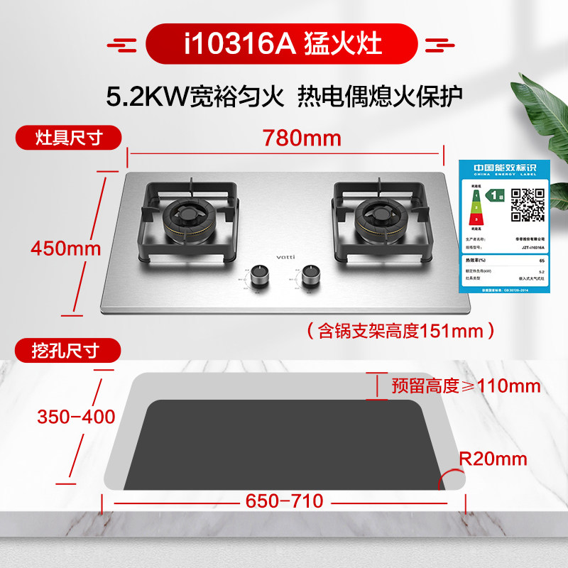 5.2KW猛火 耐用不锈钢 一级能效 台嵌两用