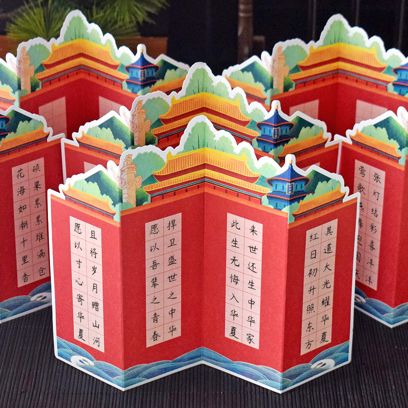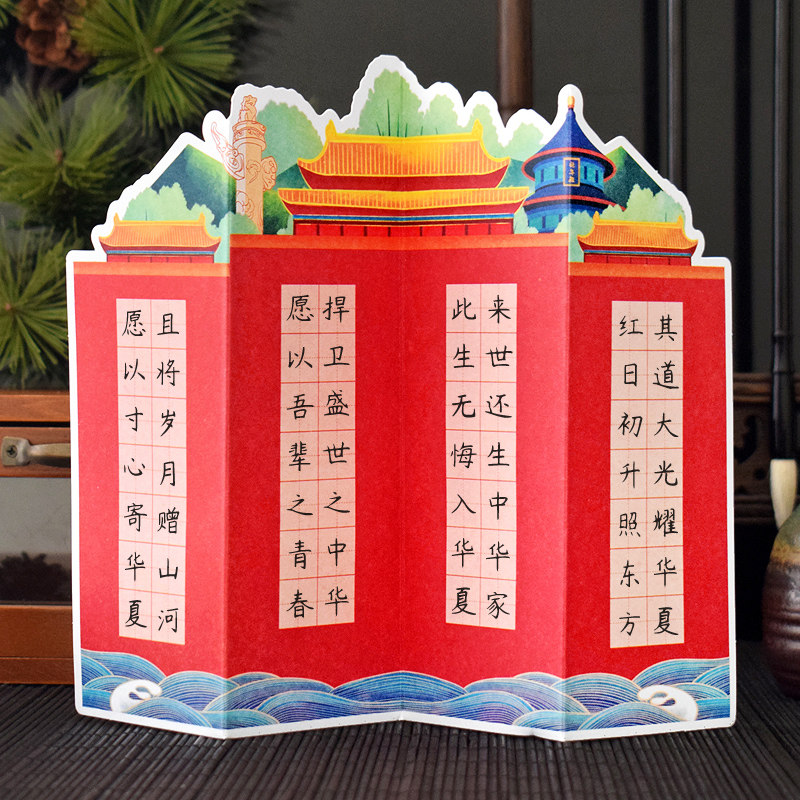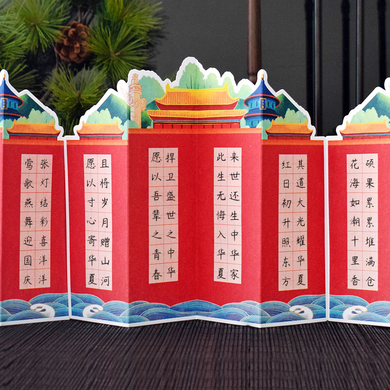 知砚新款盛世华章硬笔书法纸趣味折叠屏风款田字格作品纸国庆节快乐红色喜庆桌面立体装饰学校课外辅导班布置