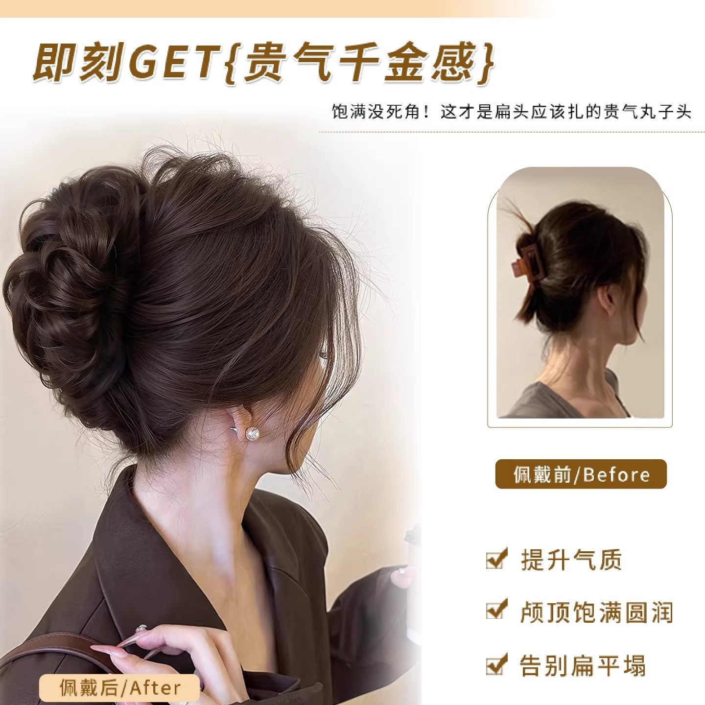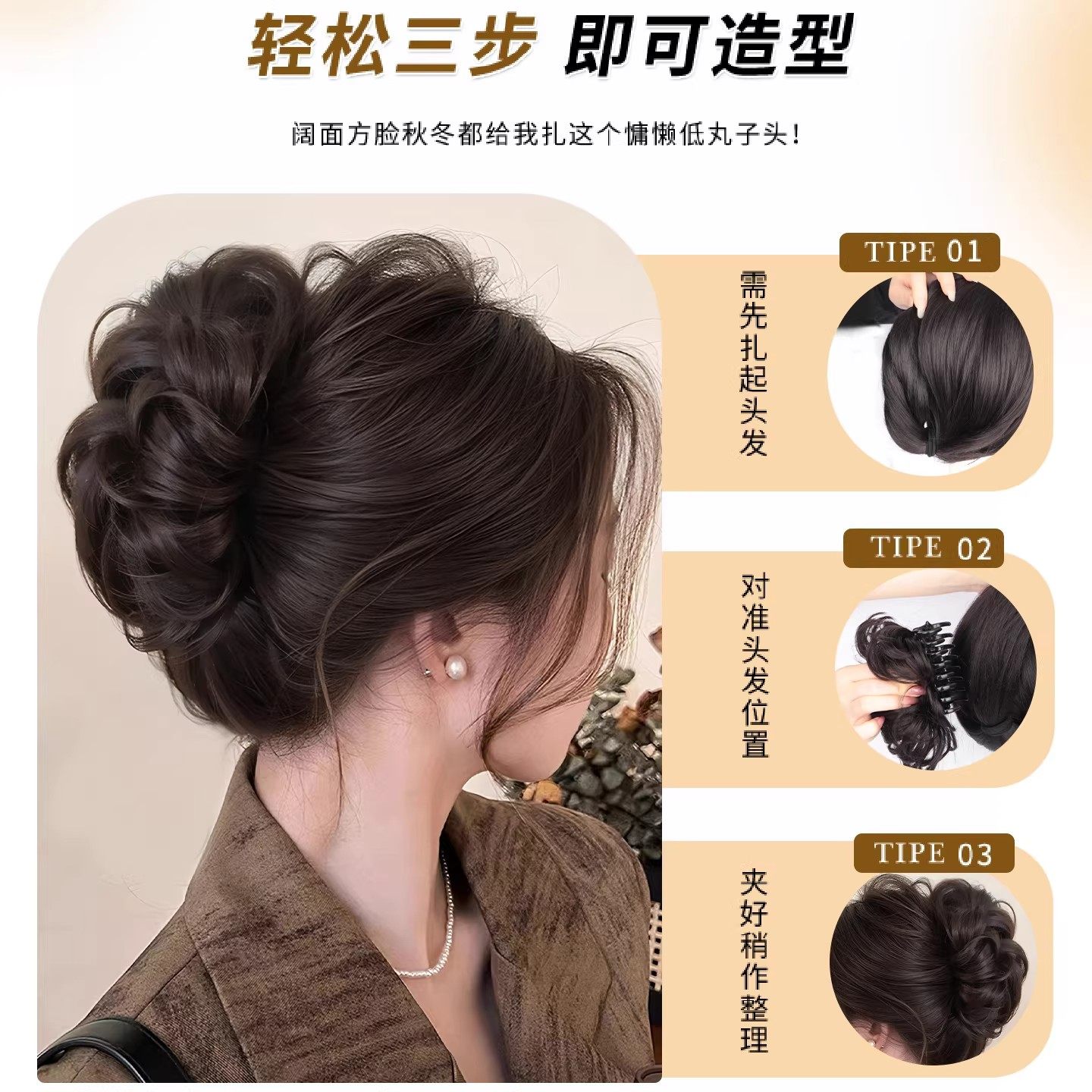 低扎丸子头假发鸡毛头抓夹盘发发包慵懒感造型头饰自然蓬松后脑勺