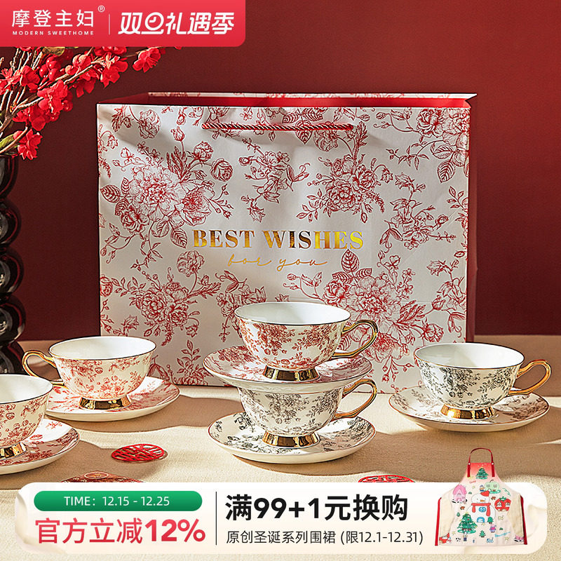 摩登主妇玫瑰假日咖啡杯套装杯子伴手礼乔迁新居结婚订婚新婚礼物