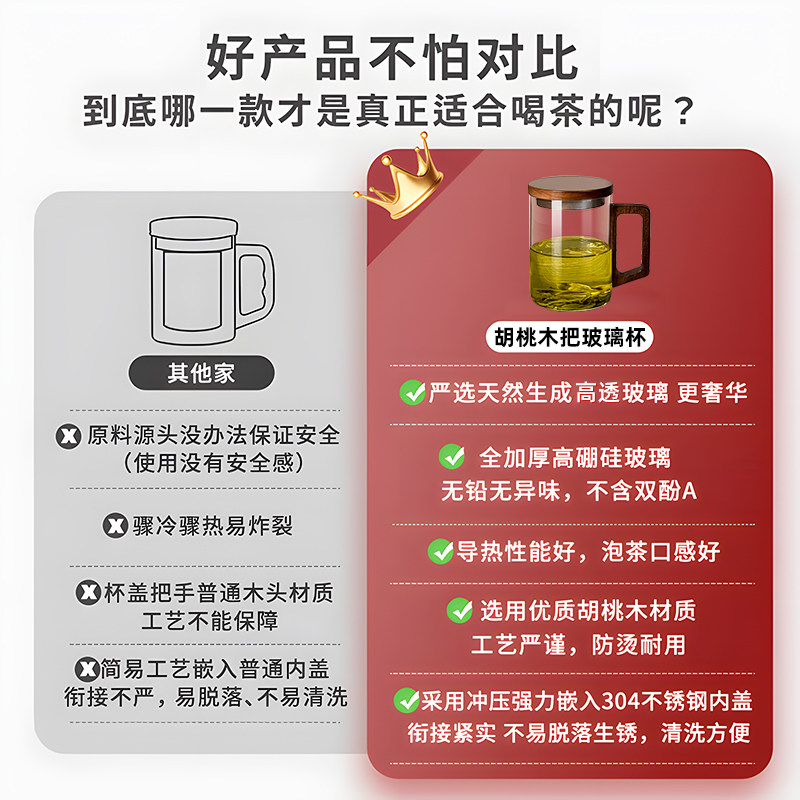 茶杯玻璃杯办公室个人专用耐高温茶水分离绿茶杯月牙过滤泡茶水杯