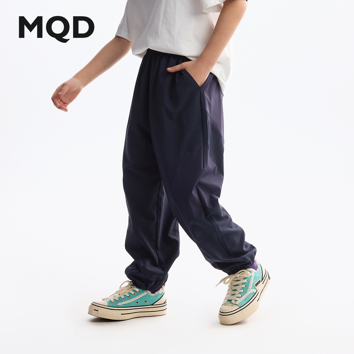 MQD童装男童洞洞布防蚊裤2025夏装新款儿童宽松运动透气拼接长裤