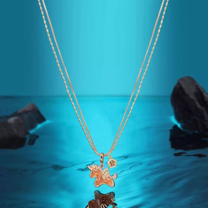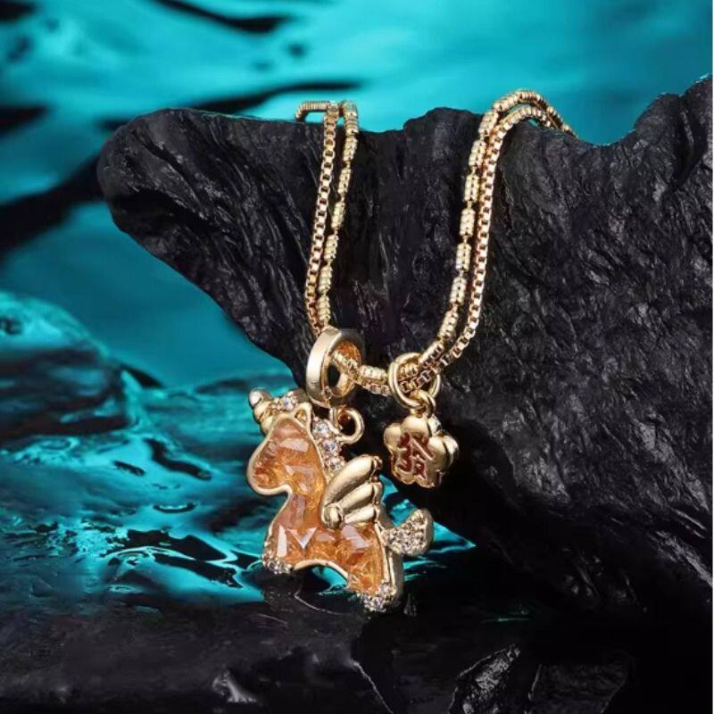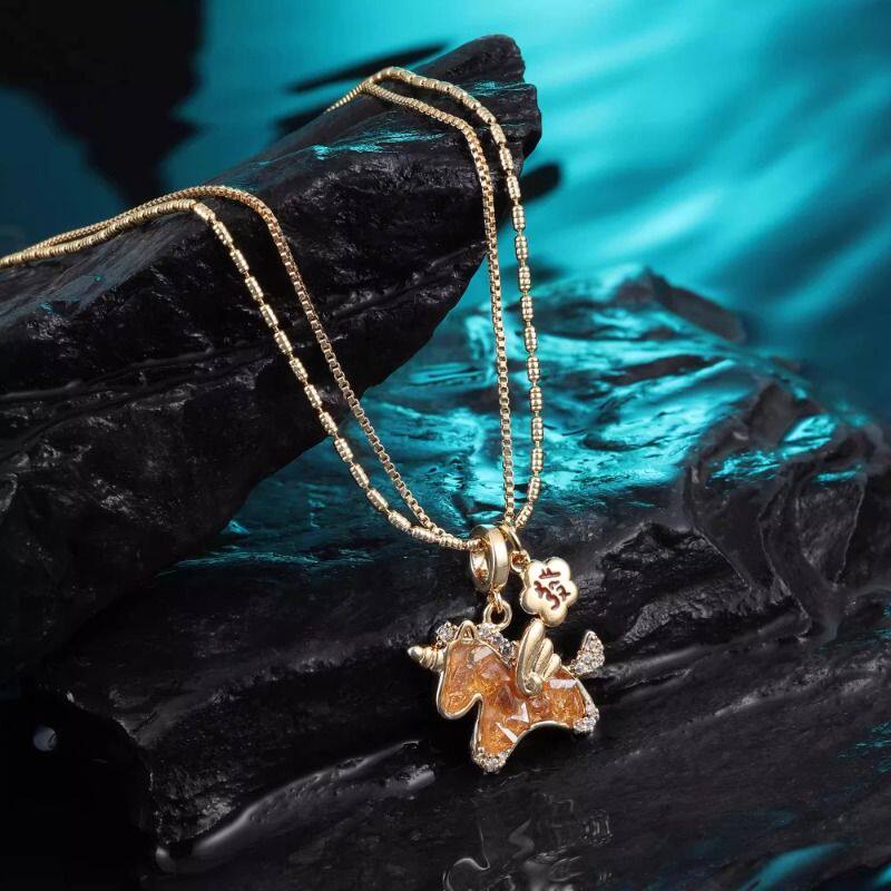 马上发财金色小马毛衣链女新年本命年项链双层叠戴锁骨链吊坠配饰