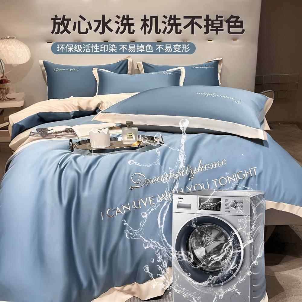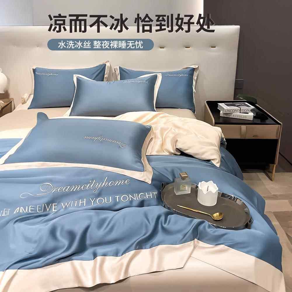轻奢冰丝四件套丝滑裸睡水洗被套夏季高级床单床上三件套夏天床品