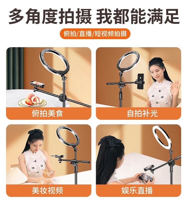 手机俯拍支架桌面专业拍摄带补光灯录视频固定美食书法录课vlog直播网课抖音防抖杆网红自拍设备神器落地专用