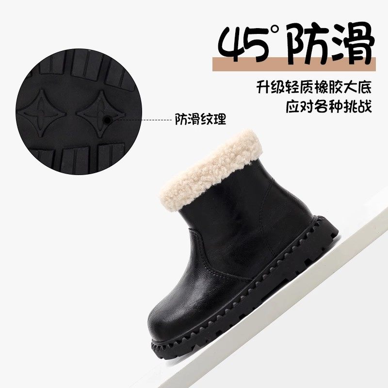 巴布豆真皮棉鞋雪地靴女童马丁短靴2025秋冬新款加绒冬季宝宝皮靴