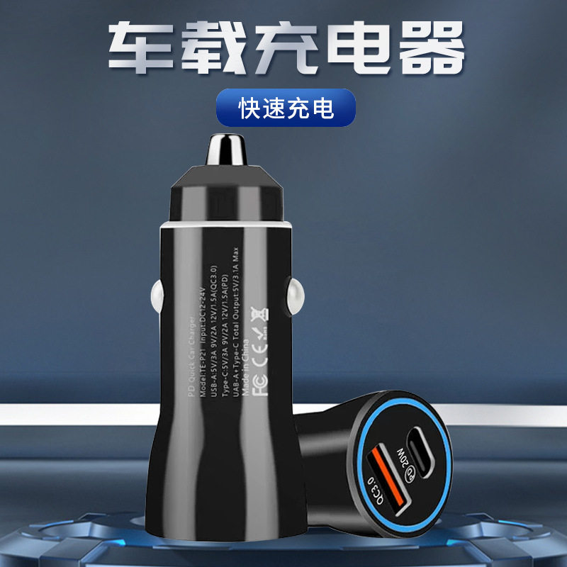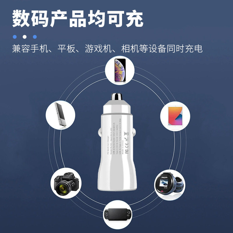 车载手机双口充电器PD20W+QC18W多功能车充迷你智能一拖二双快充