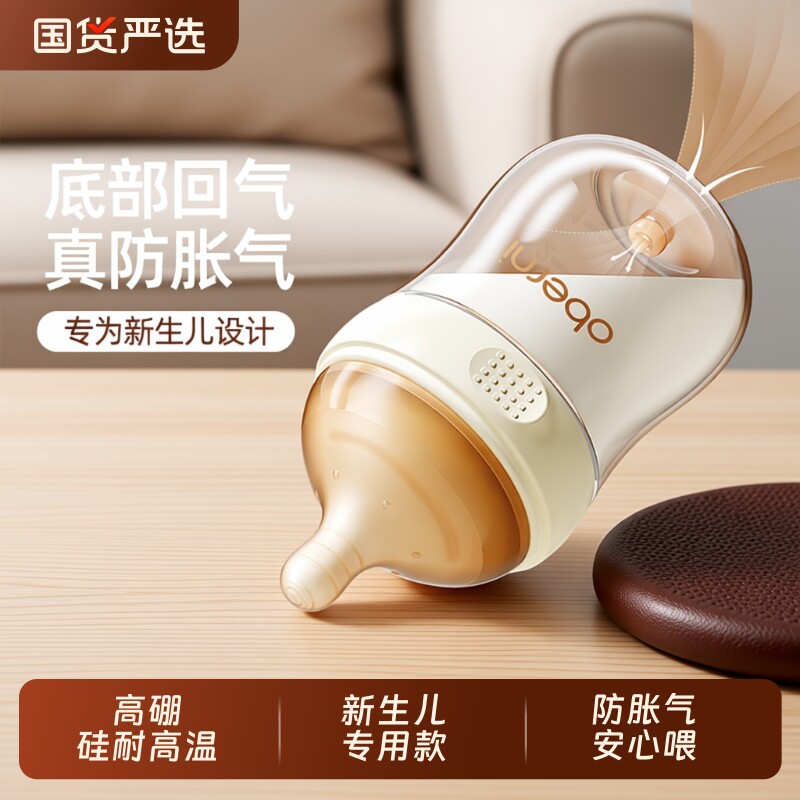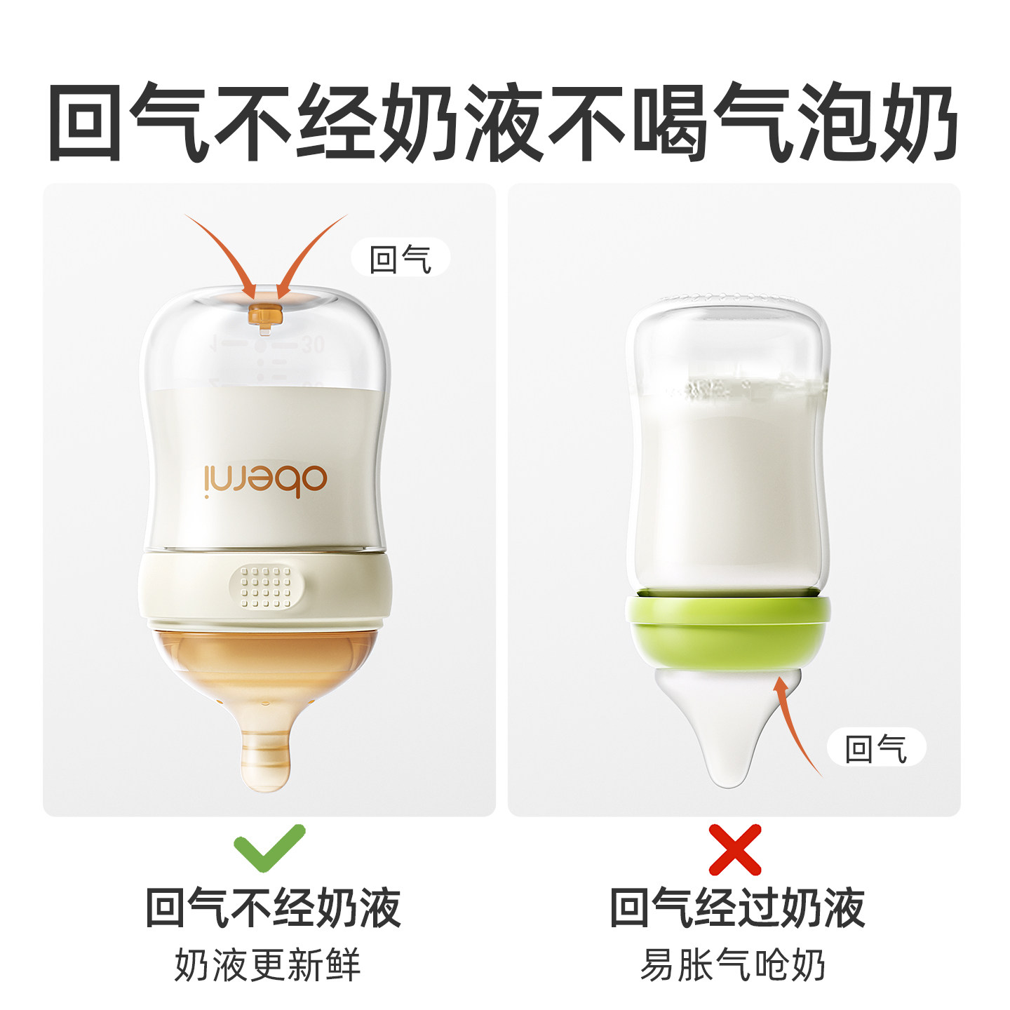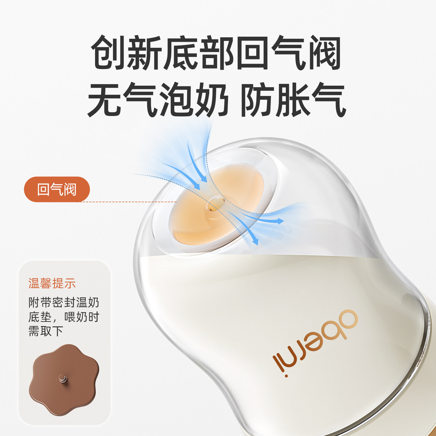欧贝妮玻璃奶瓶底部防胀气婴儿专用0到3-6个月新生儿宝宝防呛奶
