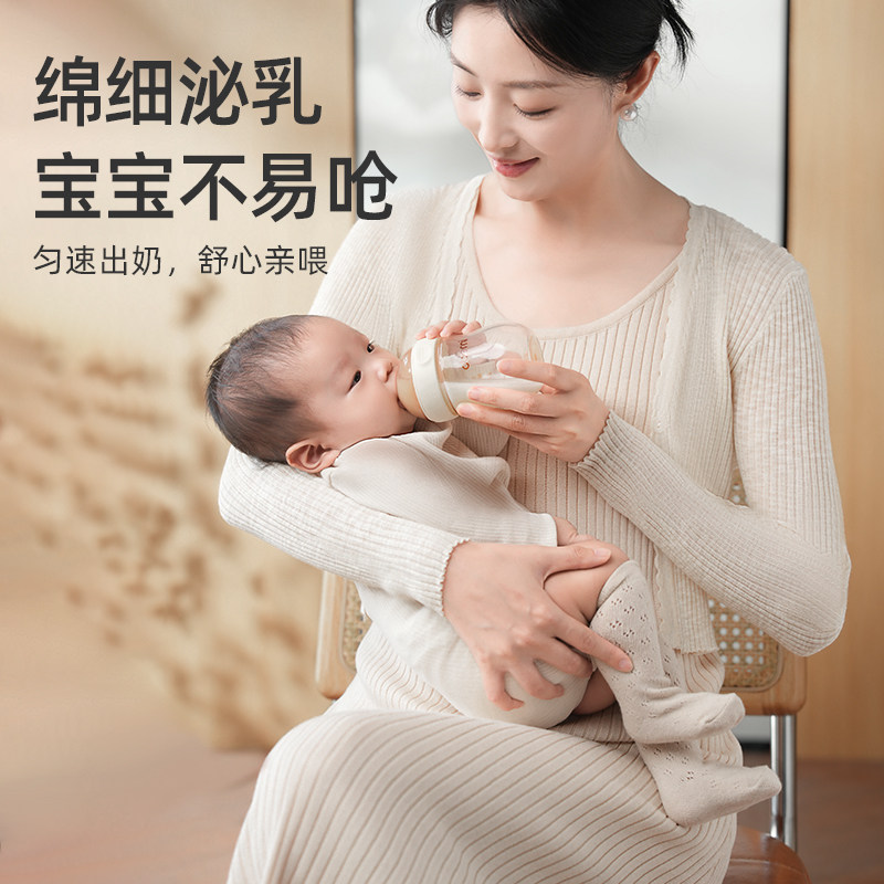 贝亲实感FUN宽口径双把手PPSU防胀防呛奶瓶奶嘴新生儿官方旗舰店