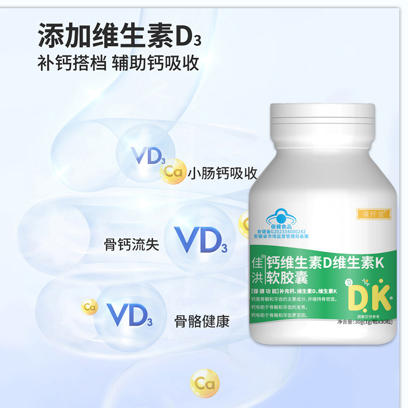 钙维生素D维生素K软胶囊儿童孕妇乳母补钙补D3补维生素K2复合葆纤