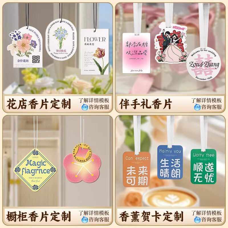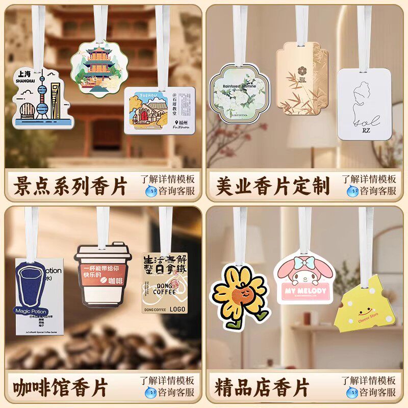 香薰吊牌定制咖啡奶茶店留香挂牌设计衣柜扩香片车载除味香氛卡片公司伴手礼创意文创书签明信片异形香片订做
