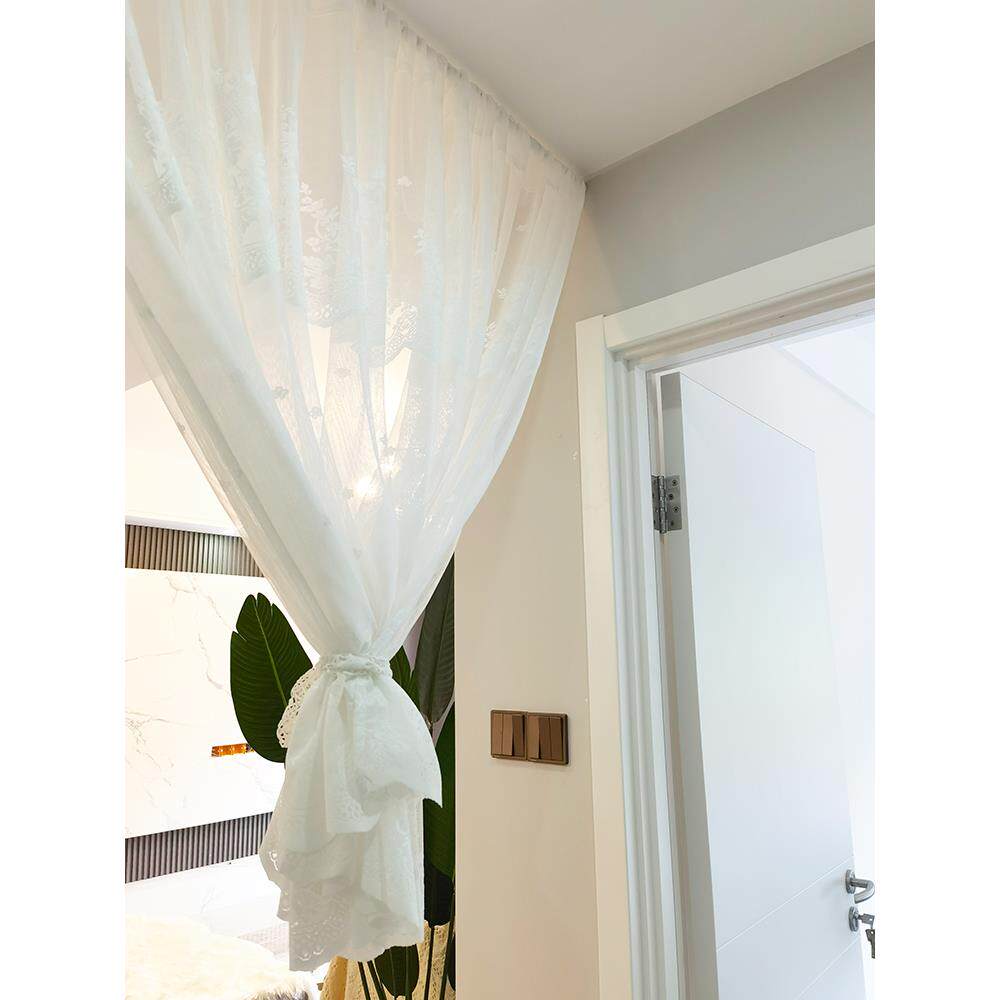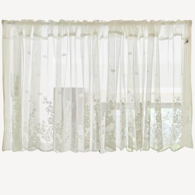 纱帘纱帘白色蕾丝田园美式半帘小窗帘飘窗帘短门帘门帘隔断窗免打