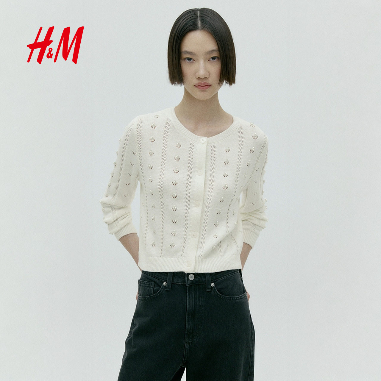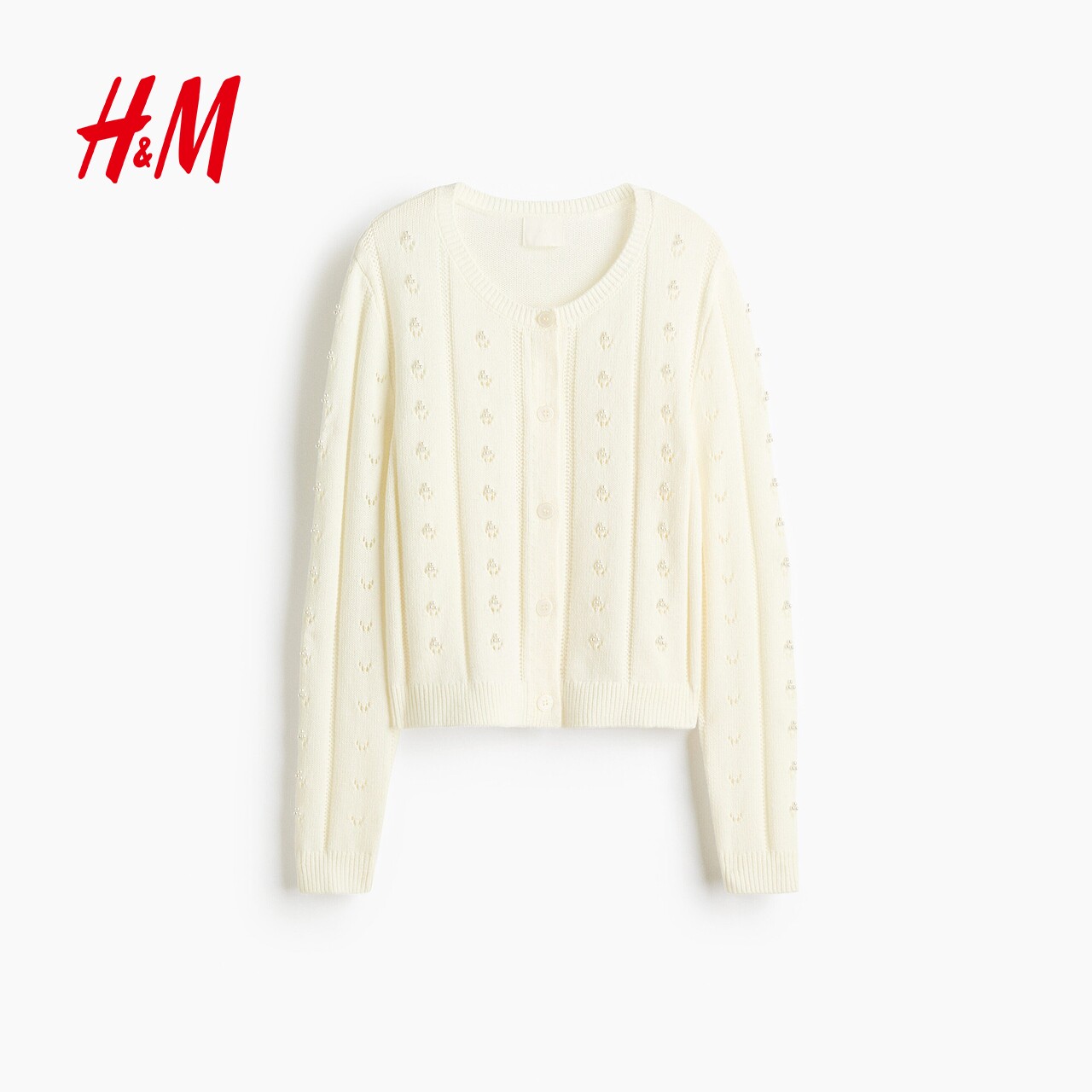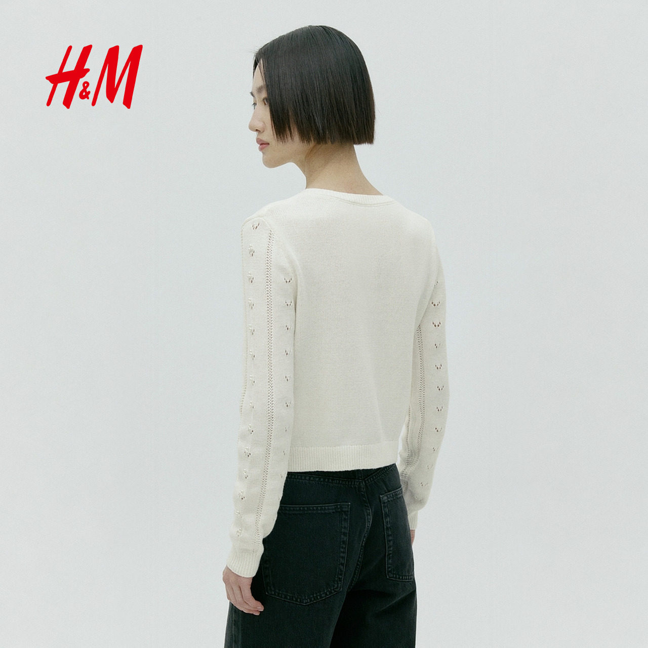 HM女装毛针织衫2026春季新款镂气质透气空装饰开衫上衣1332427