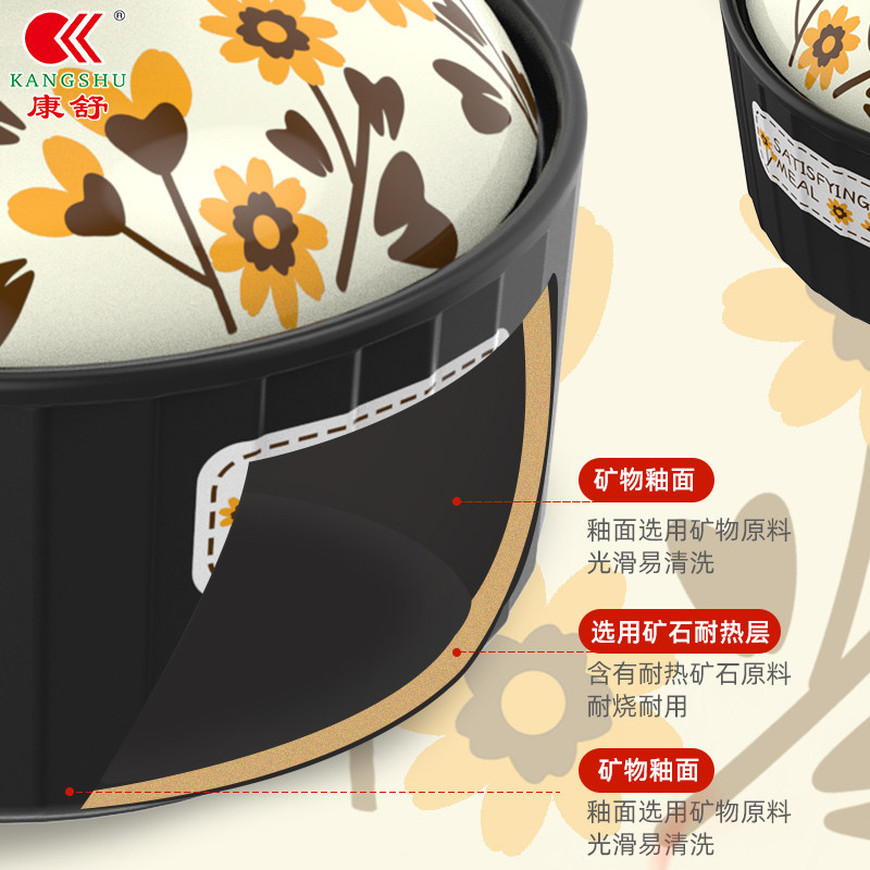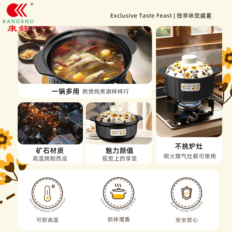 康舒中式家用砂锅向日葵大容量陶瓷炖锅汤煲耐高温干烧不裂小沙锅