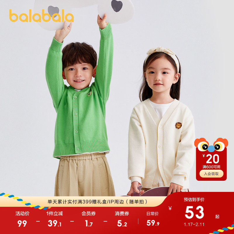 巴拉巴拉童装儿童毛衣男童2025春秋装薄开衫女童针织衫宝宝上衣潮