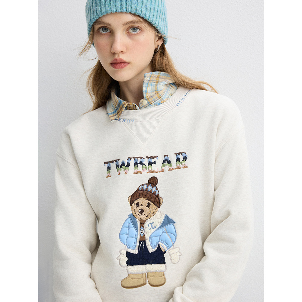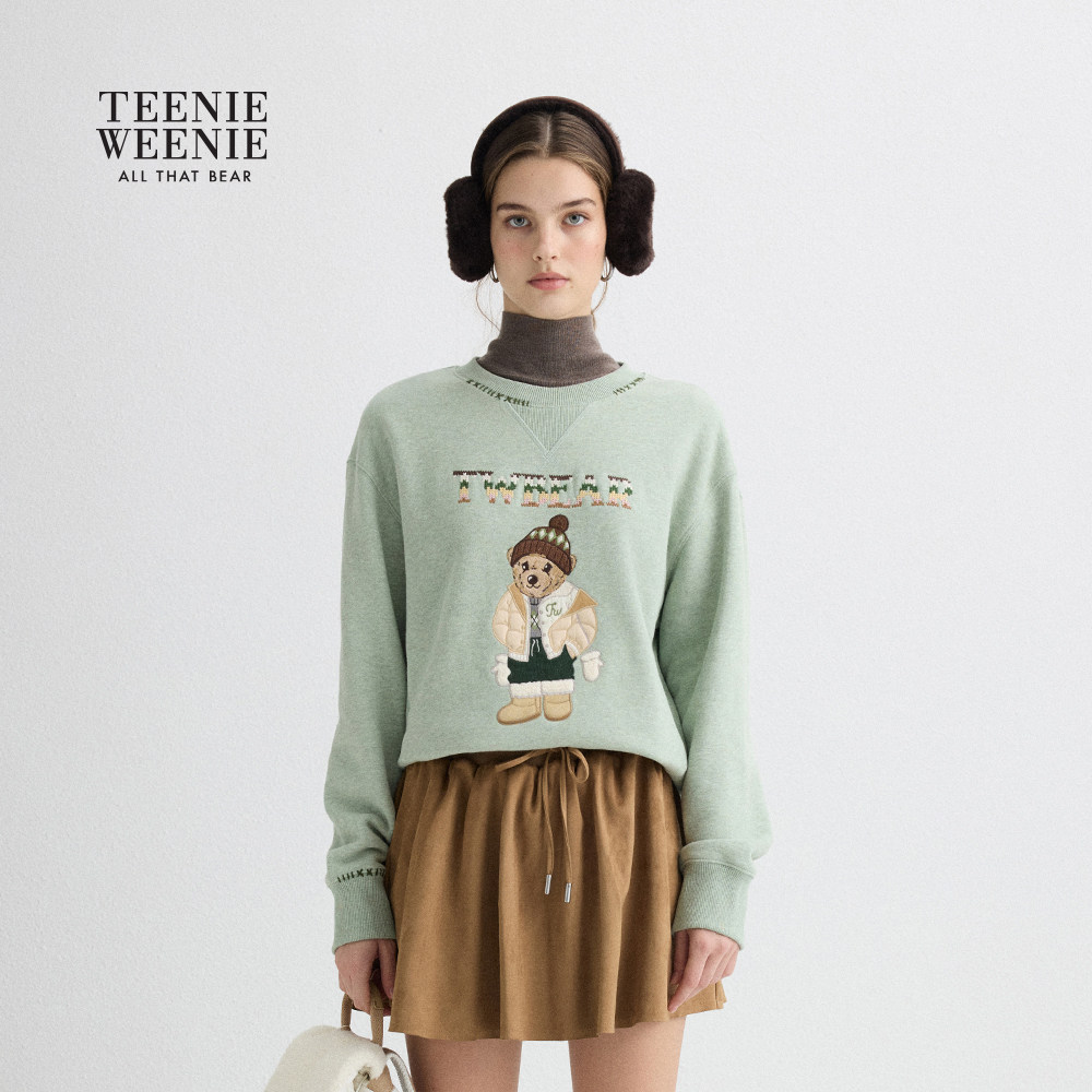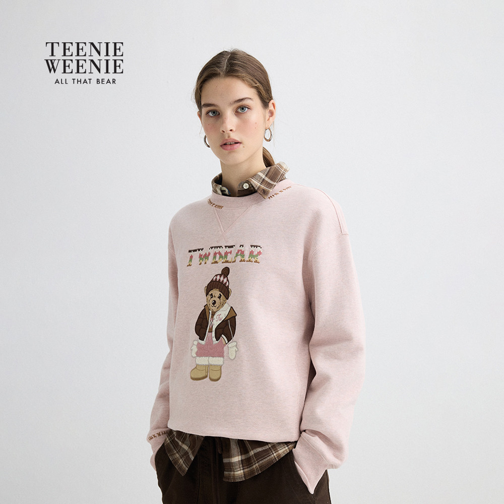 TeenieWeenie小熊女装卫衣秋冬季大熊撞色刺绣拼接圆领内搭上衣