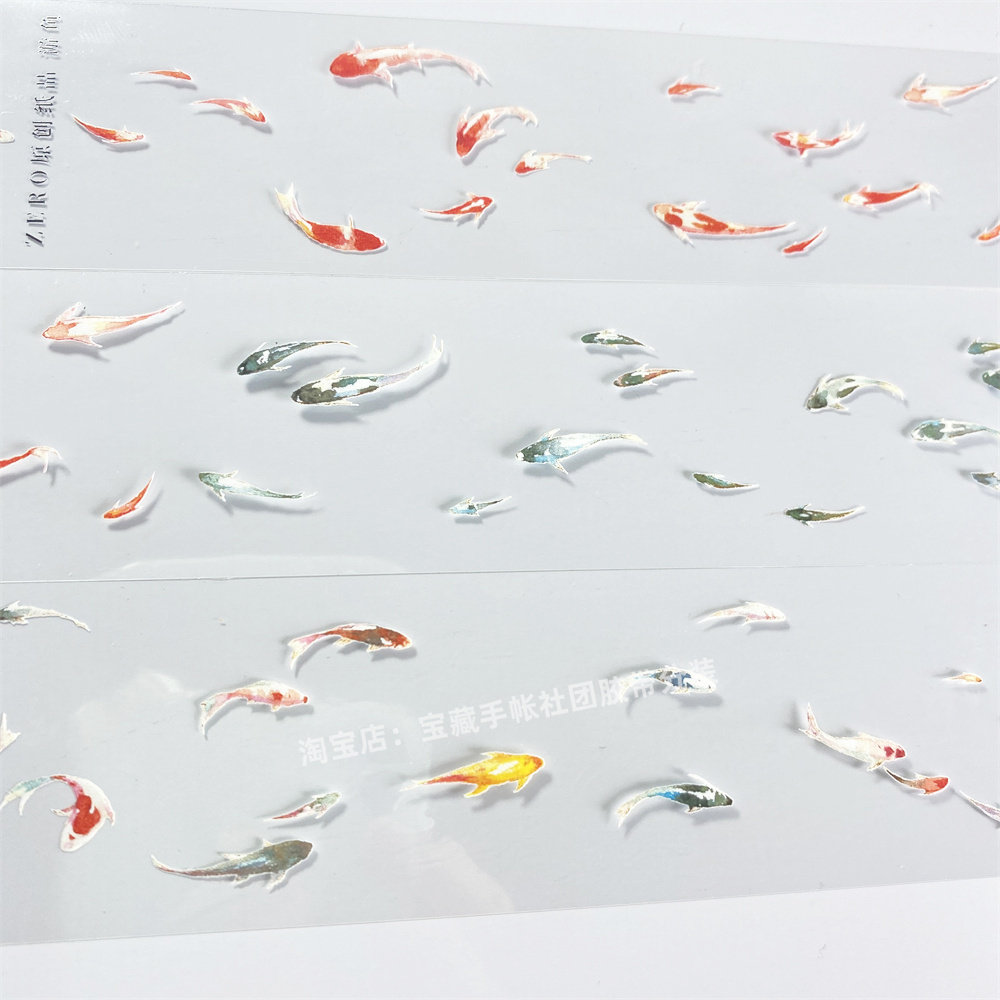 手帐分装胶带u11游鱼zero小金鱼锦鲤古风PET素材账流麻手机壳贴纸