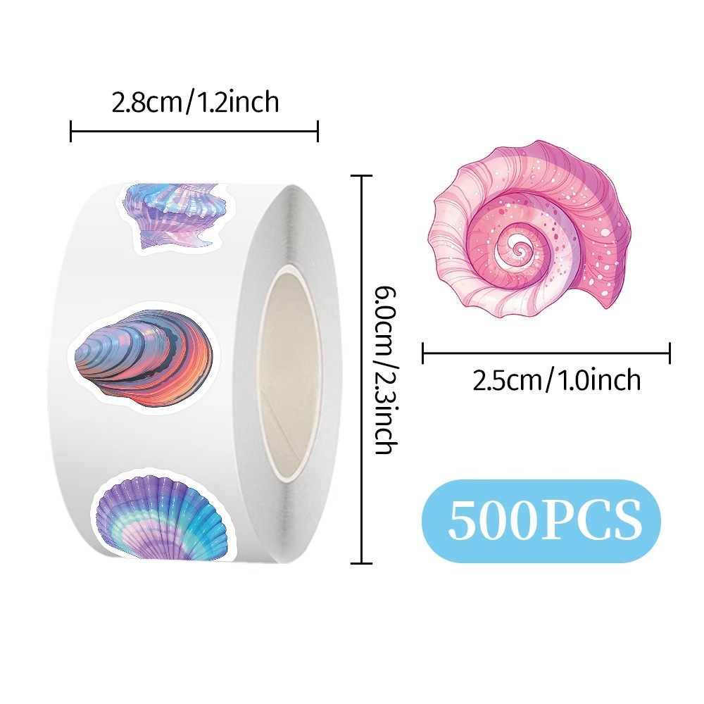 【大图释官方授权】1000贴卡通彩绘海螺贝壳卷卷贴ins高颜值小清新diy自粘手机壳行李箱标签立体桌面封口贴画