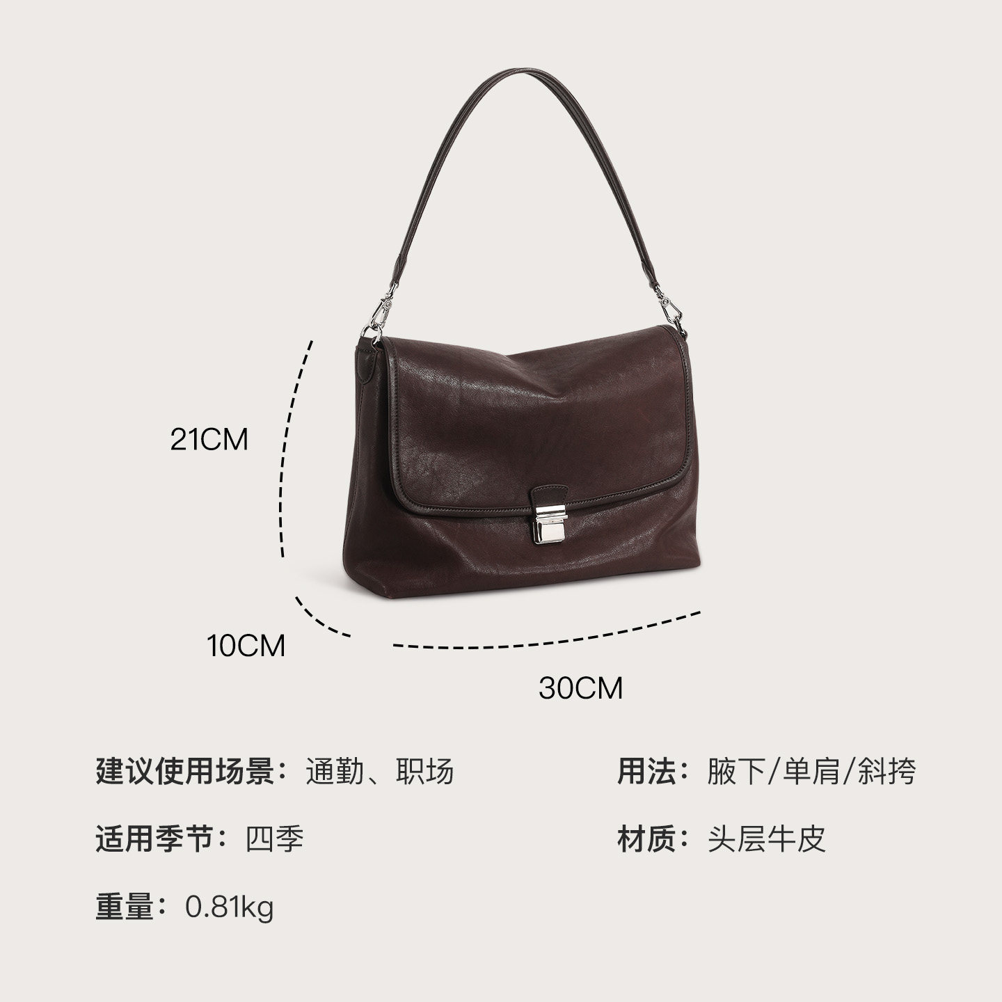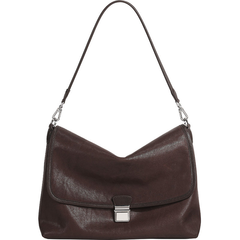 妙迪头层植鞣牛皮托特包商务通勤大容量腋下包复古时尚斜挎包包女