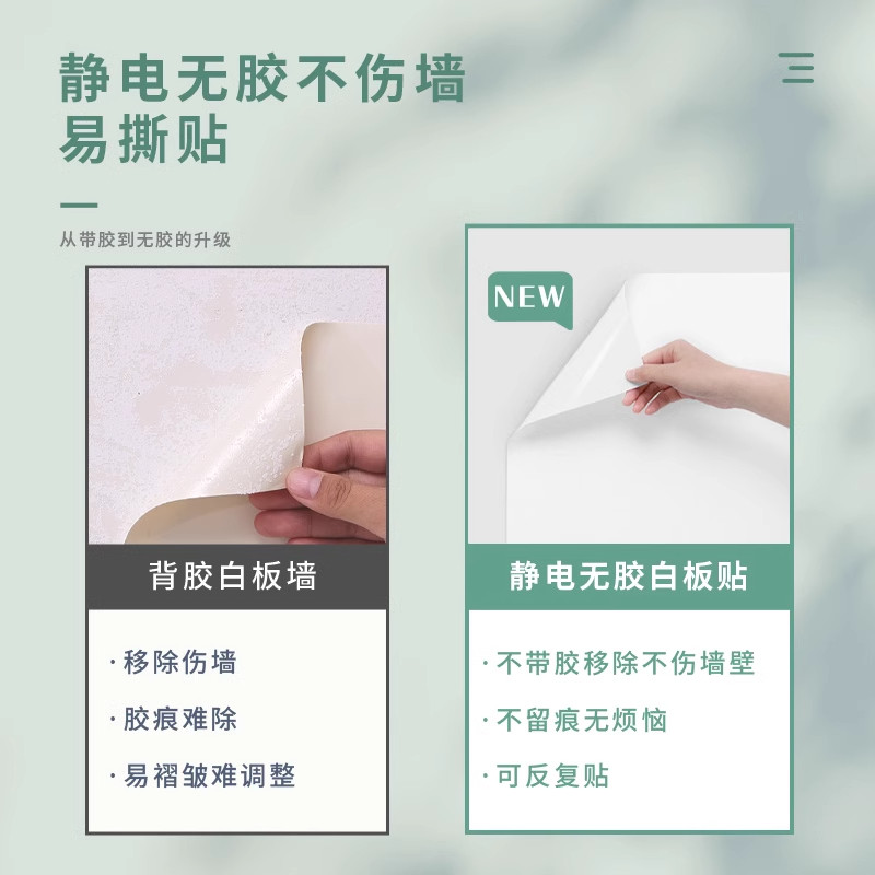 静电白板贴墙面吸附不伤墙儿童无痕墙贴墙壁写字画画玻璃防水无胶