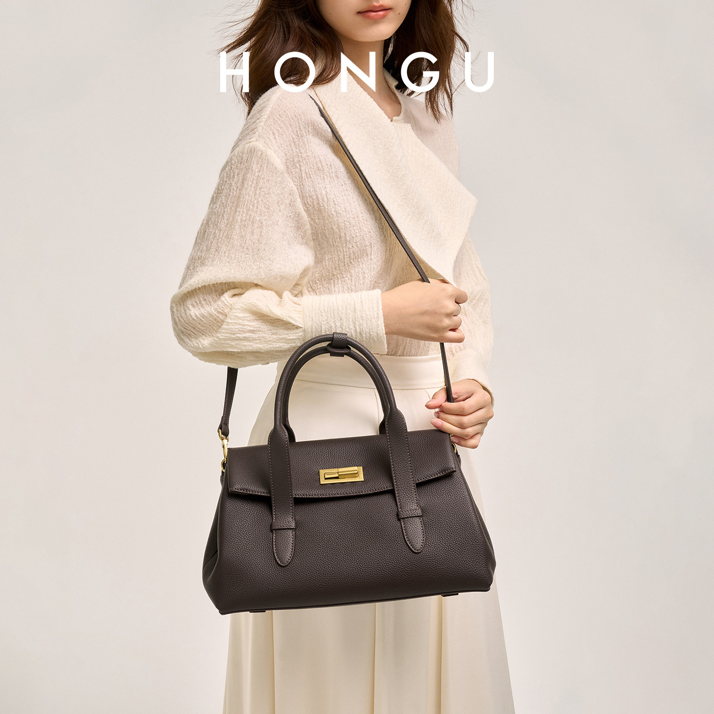 红谷包包女式2025新款真皮单肩手提包通勤大气高级感手拎包女士包