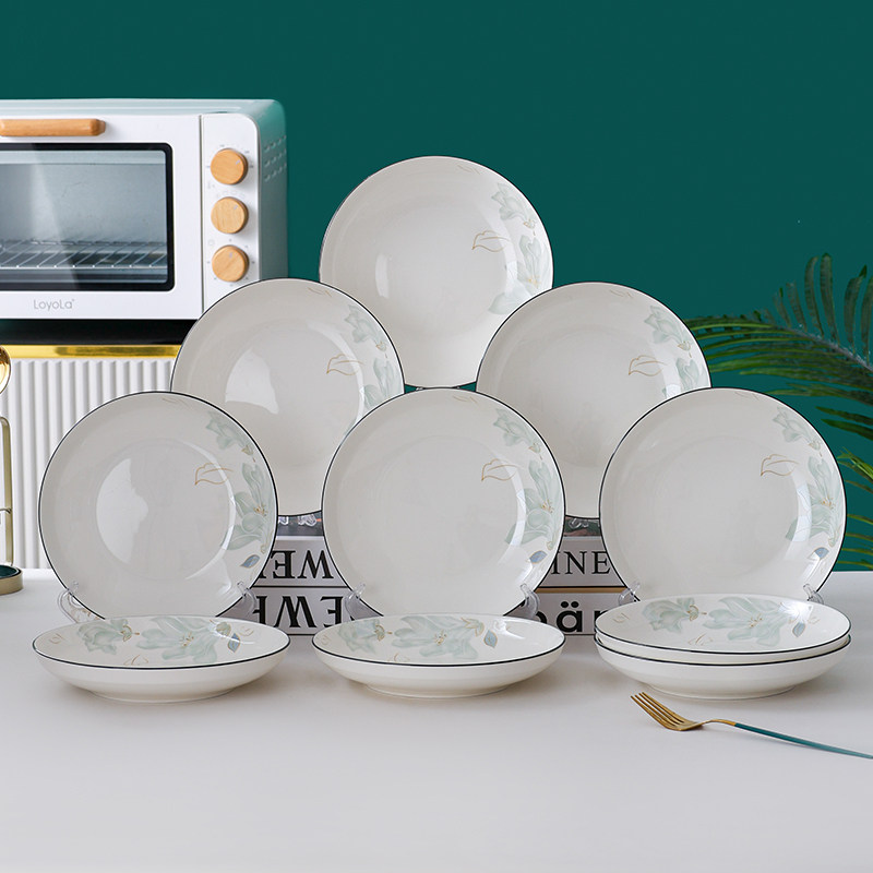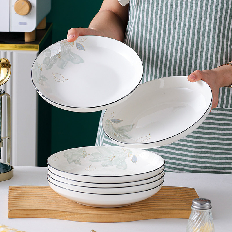 陶瓷家用盘碗5个菜盘1汤碗圆盘子大汤碗水果盘饭盘碗碟子可微波炉