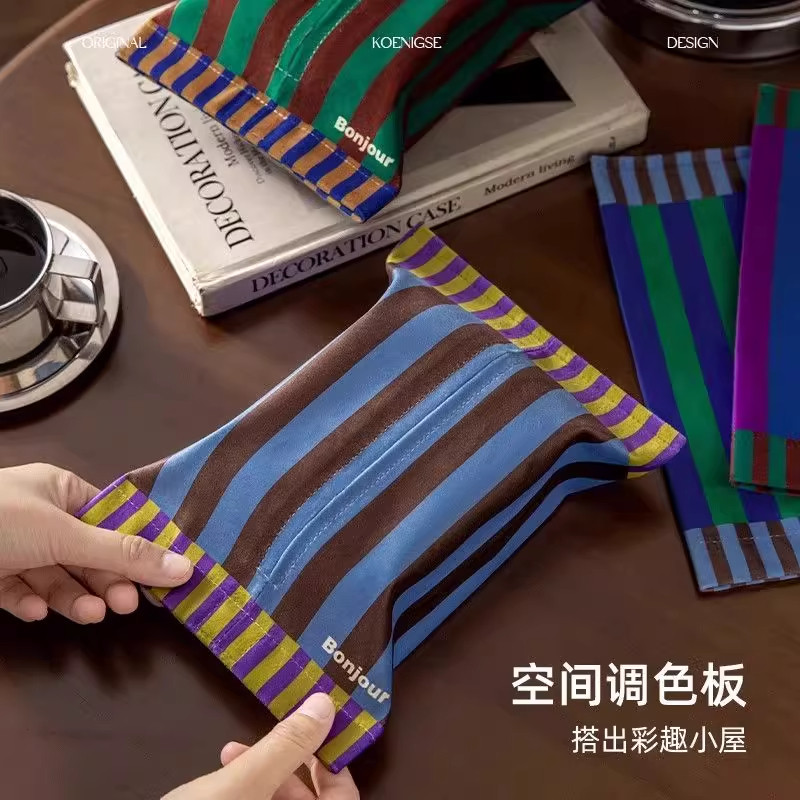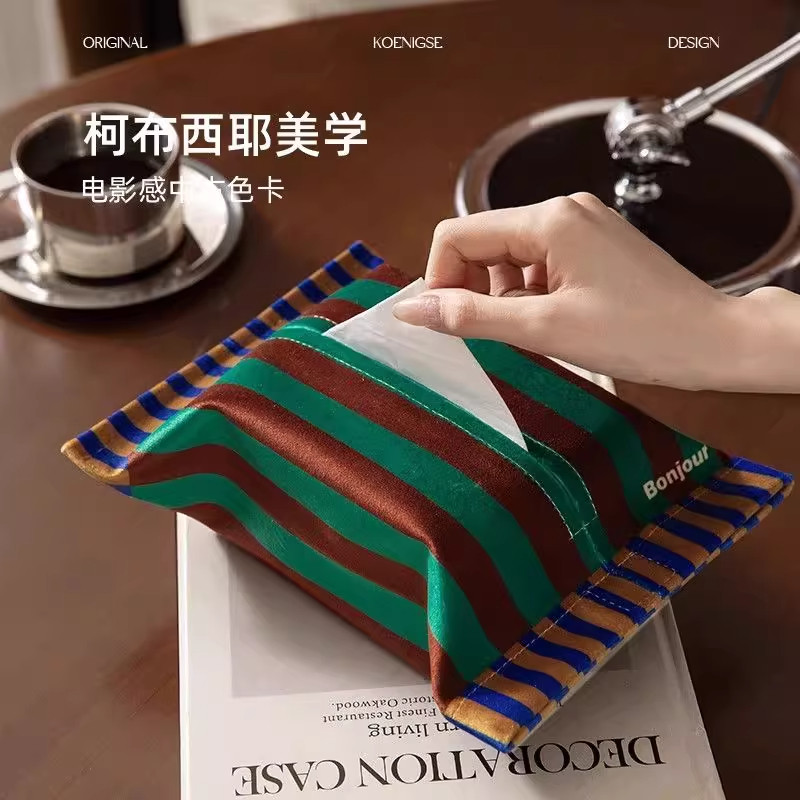 新款美拉德中古风纸巾盒车载抽纸盒多功能家用客厅餐厅纸巾收纳盒