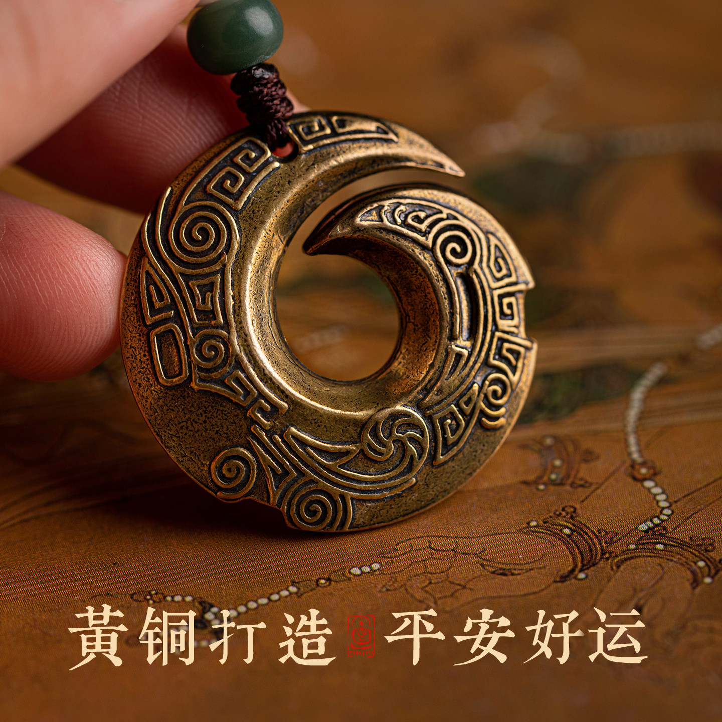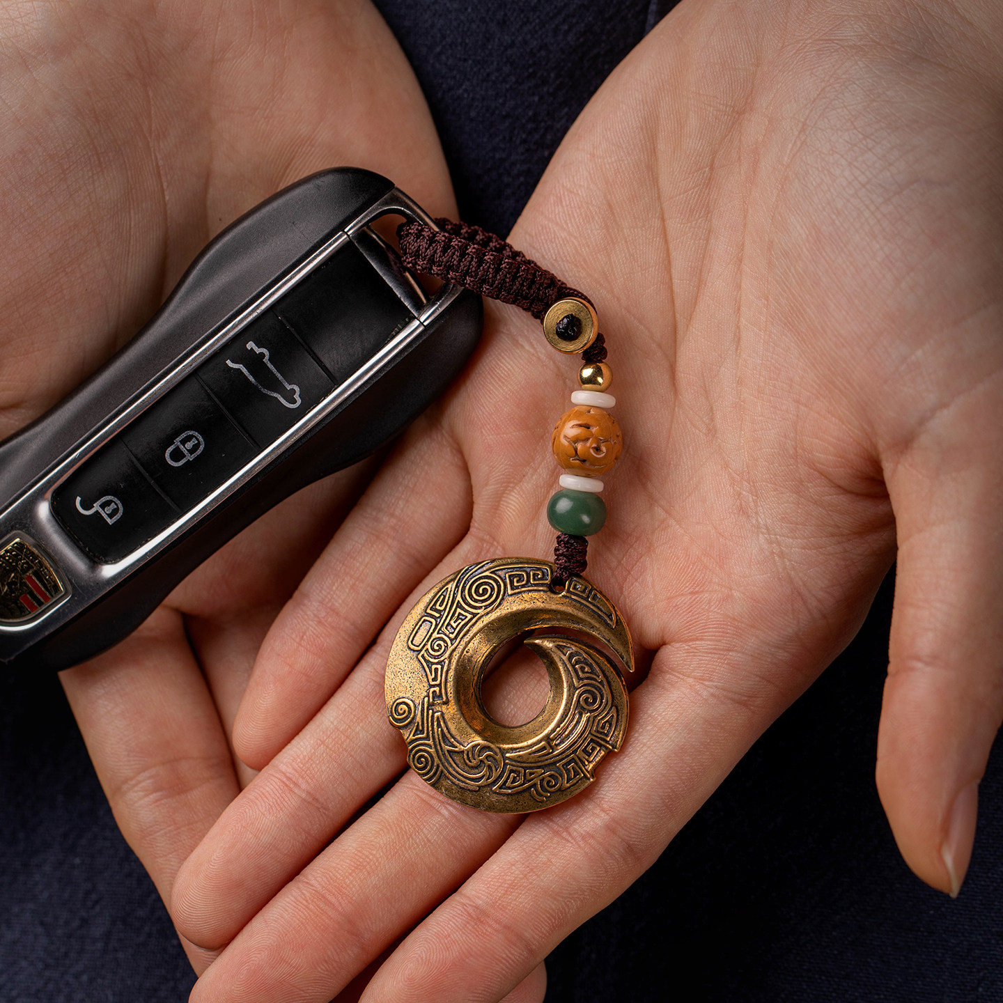 大善堂时来运转黄铜汽车钥匙扣实心雕刻挂件出入平安国潮装饰礼物