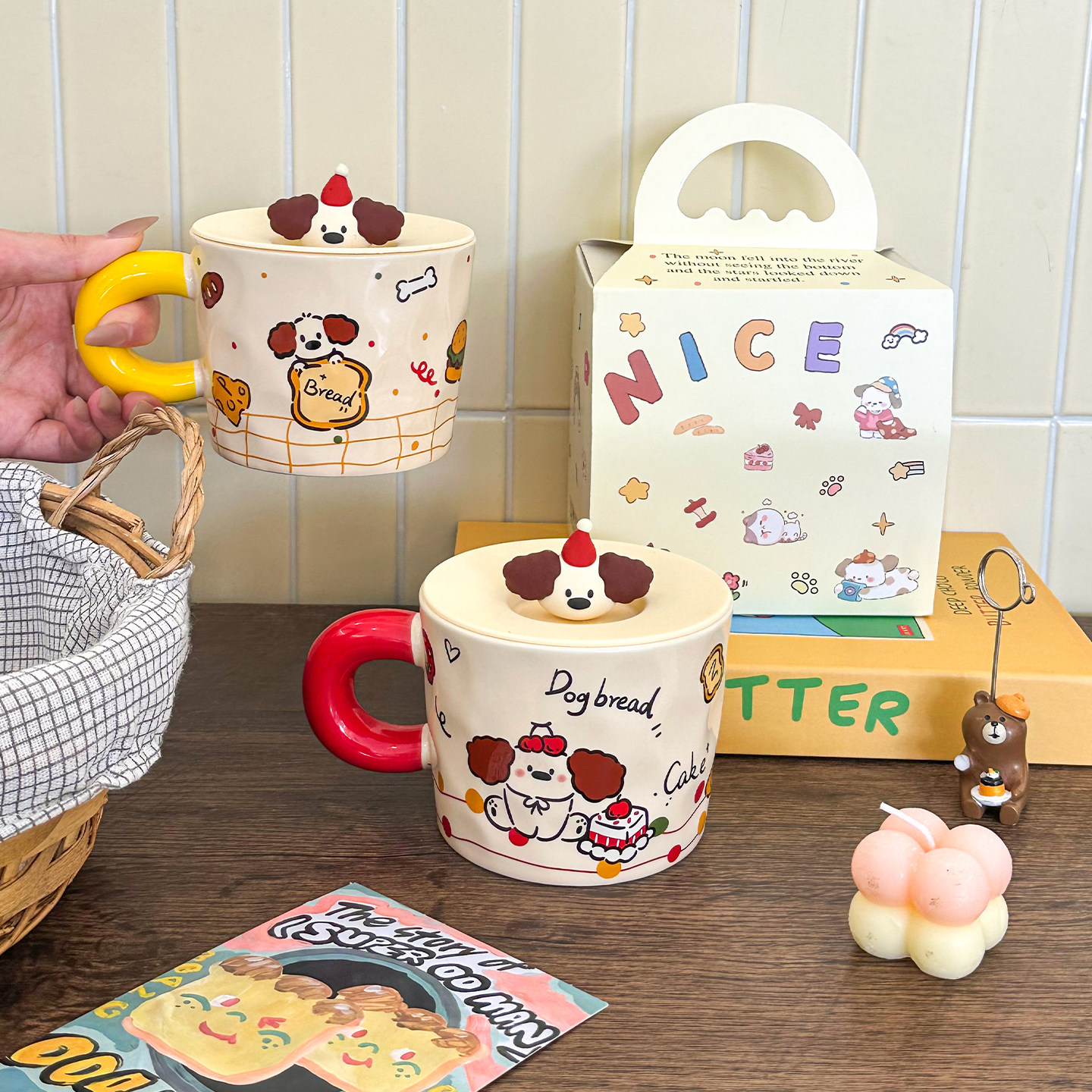 舍里可爱卡通陶瓷马克杯带盖家用喝水杯情侣闺蜜对杯生日礼物女