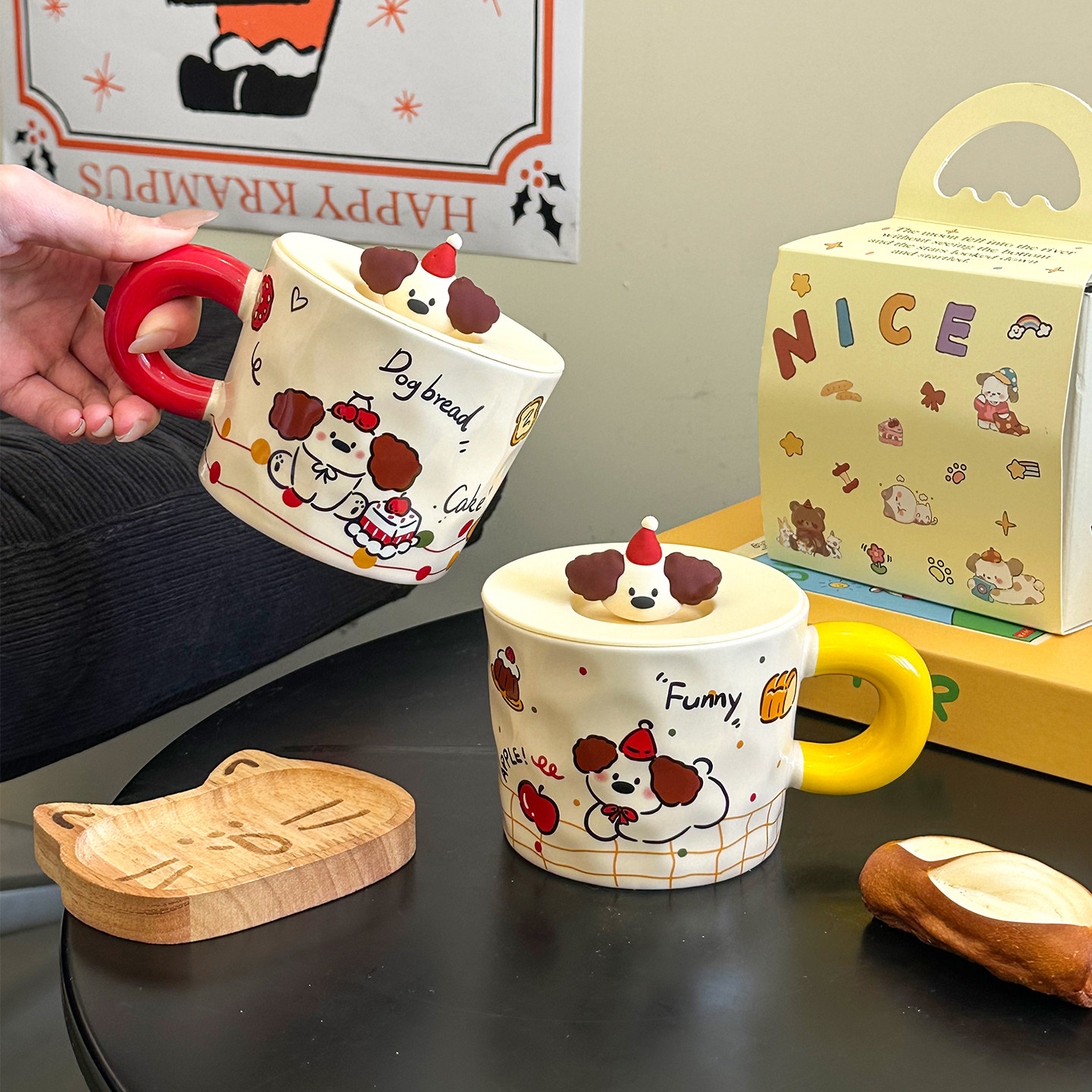 言仓线条小狗马克杯复古陶瓷水杯可爱儿童男女情侣圣诞生日礼物