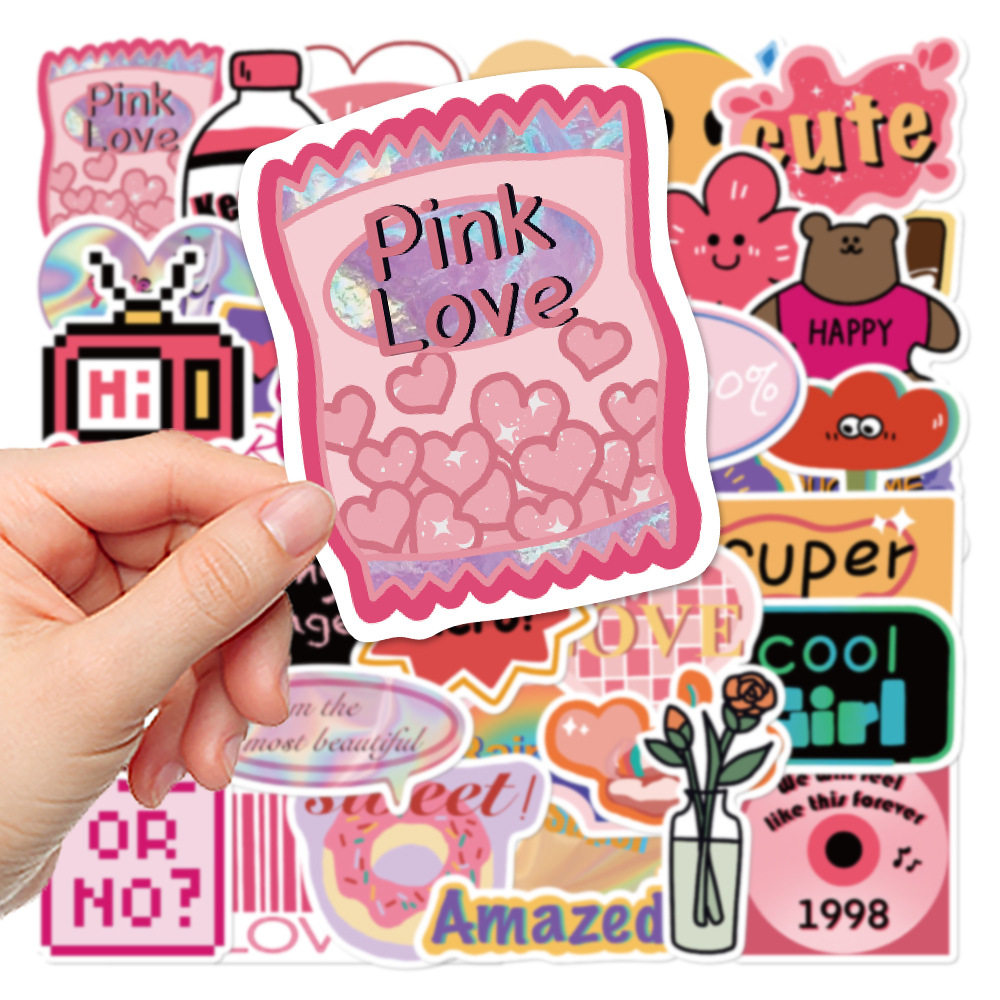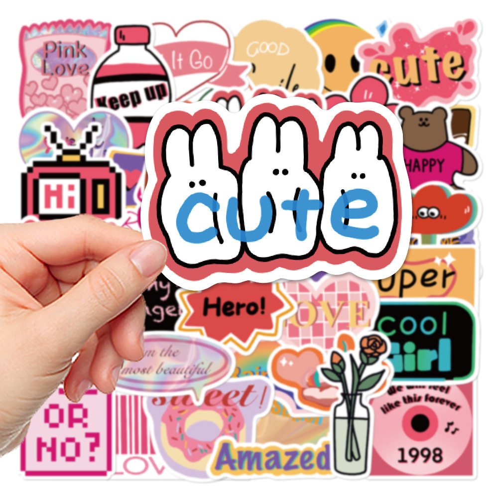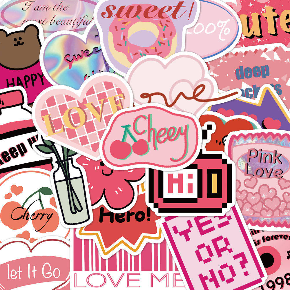 40张少女心欧美复古装饰贴纸奶茶杯咖啡杯手账本手机装饰防水贴画