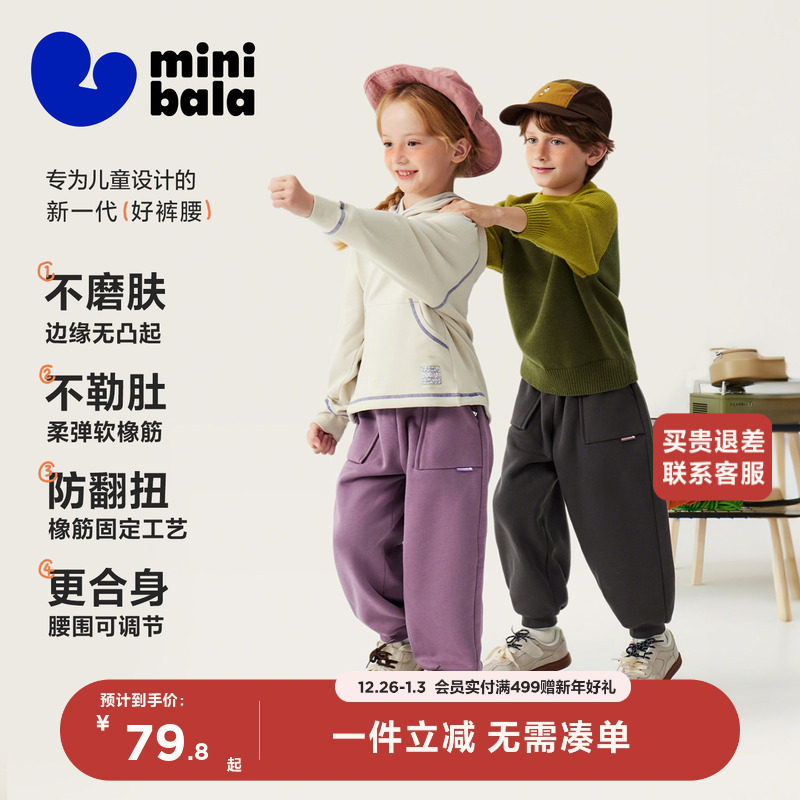【泡泡裤】迷你巴拉巴拉男女童裤子2025冬季新品加绒儿童保暖长裤
