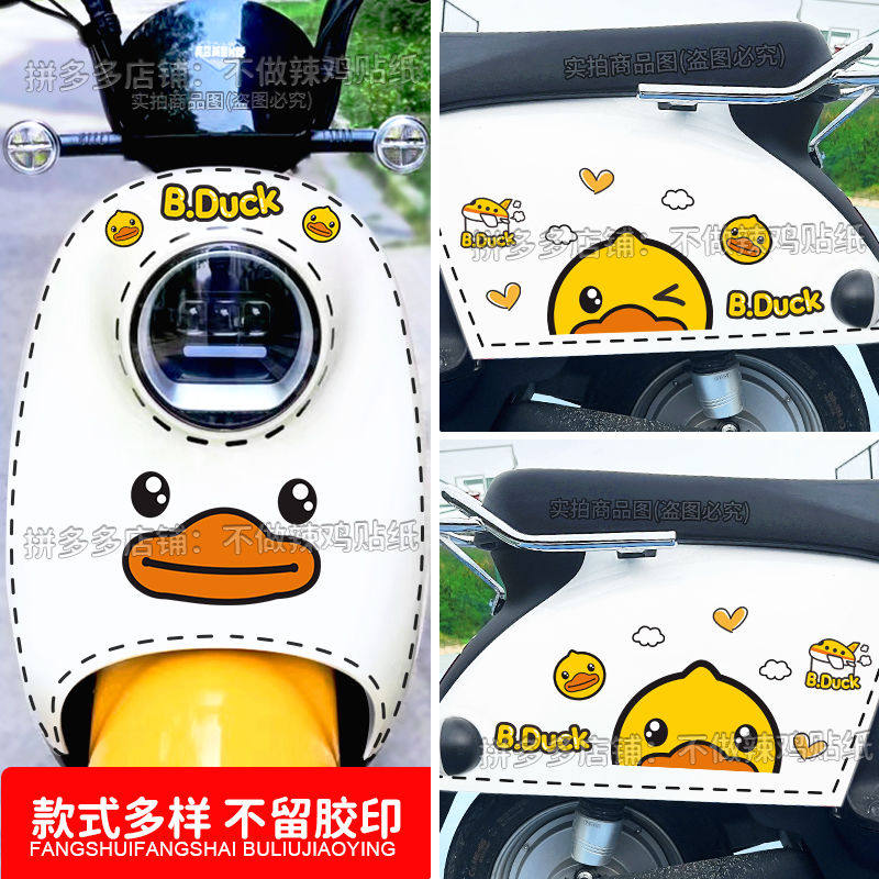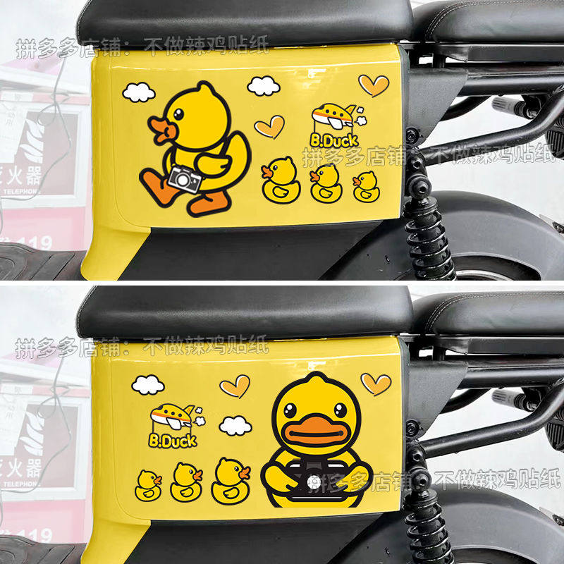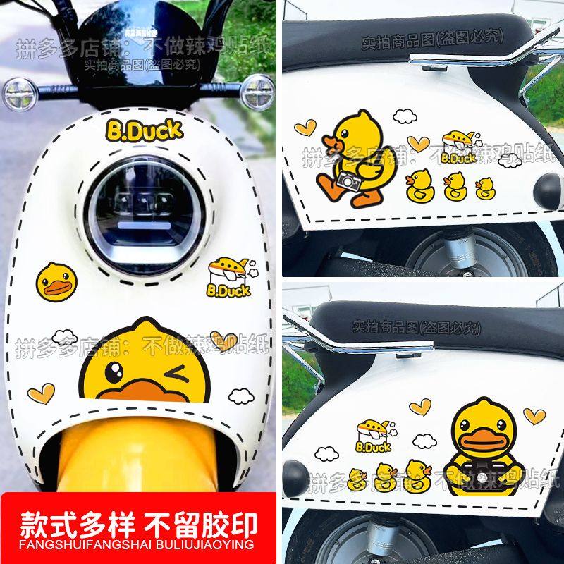 小黄鸭电动车贴纸可爱卡通装饰贴画电瓶车车身遮挡划痕防水不留胶