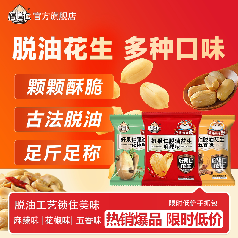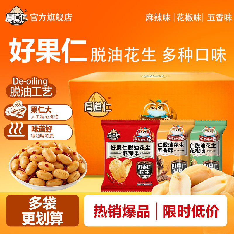 【休闲零食】脱油花生厚道仁花生米小包装小吃便携休闲零食批发