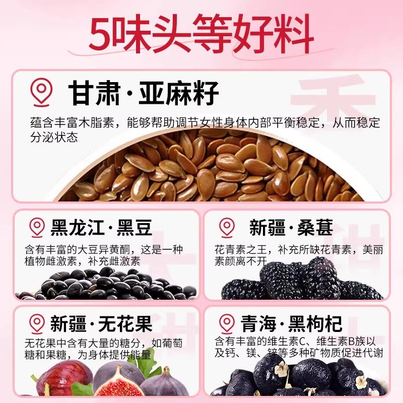养雌黄体酮茶种子循环亚麻籽无花果黑豆枸杞桑葚女生泡水喝养生茶