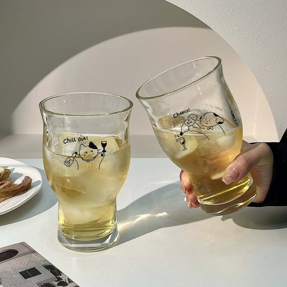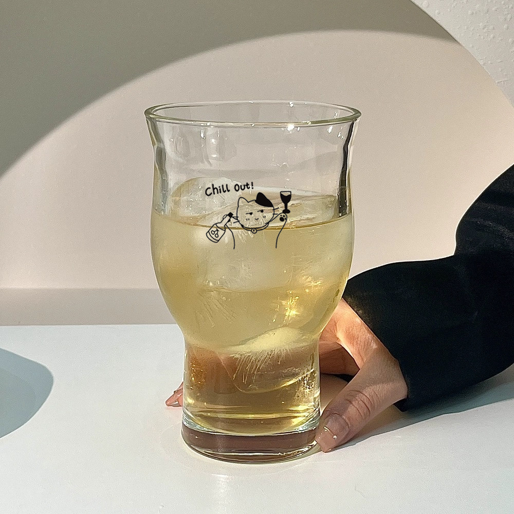 高颜值宽口果茶杯玻璃杯大容量冰咖啡杯啤酒杯苏打气泡水杯饮料杯