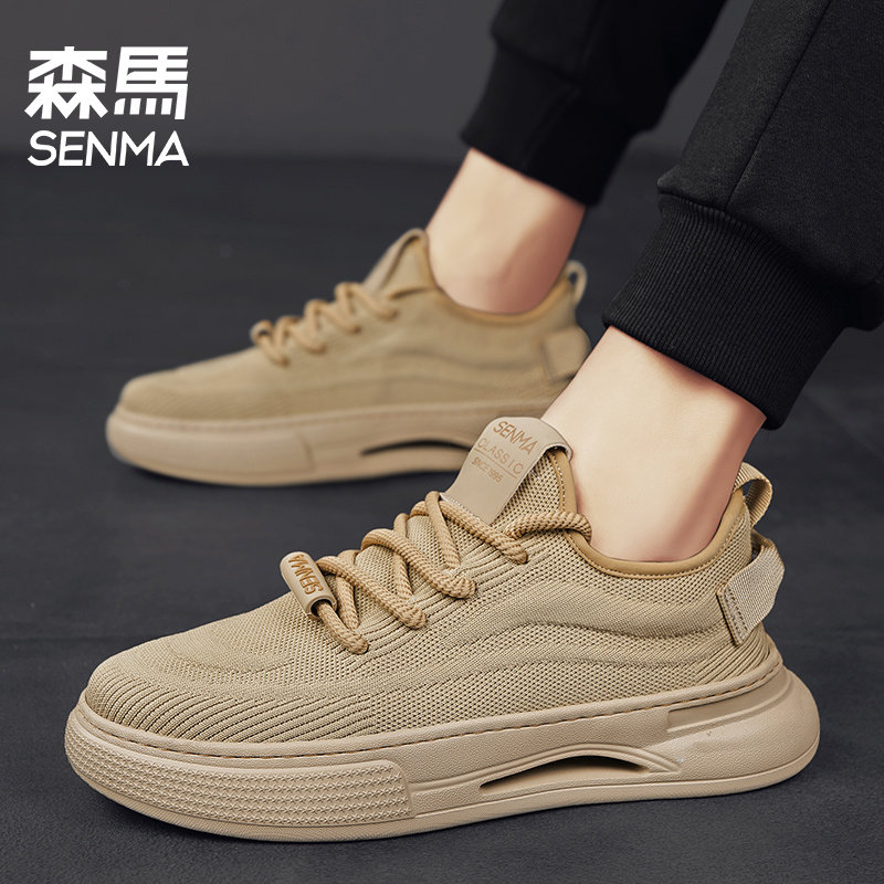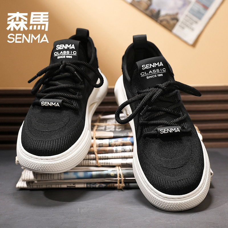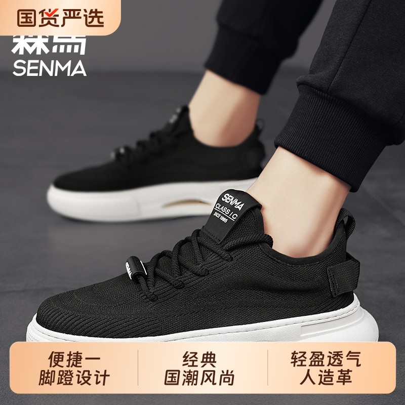 森马男鞋夏季透气薄款网面防臭运动休闲板鞋防滑工作黑色飞织布鞋