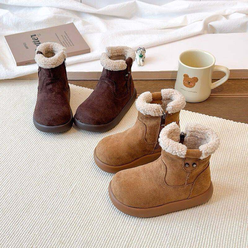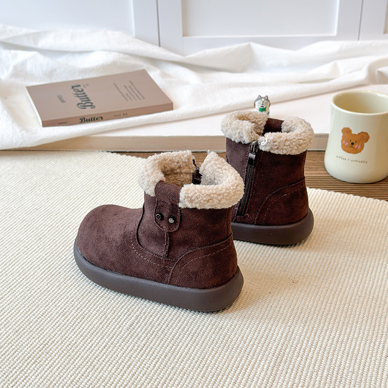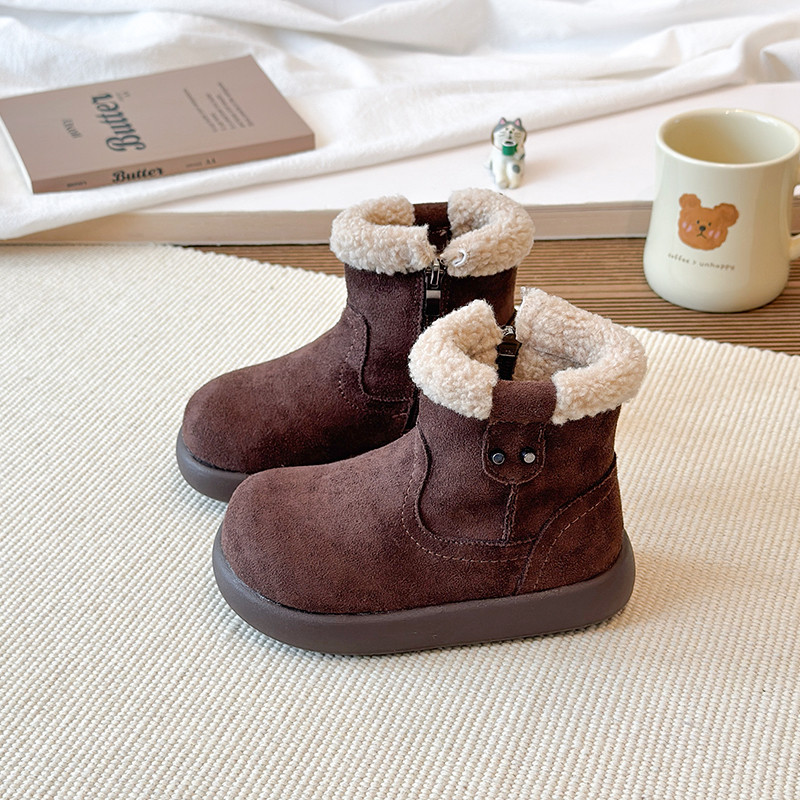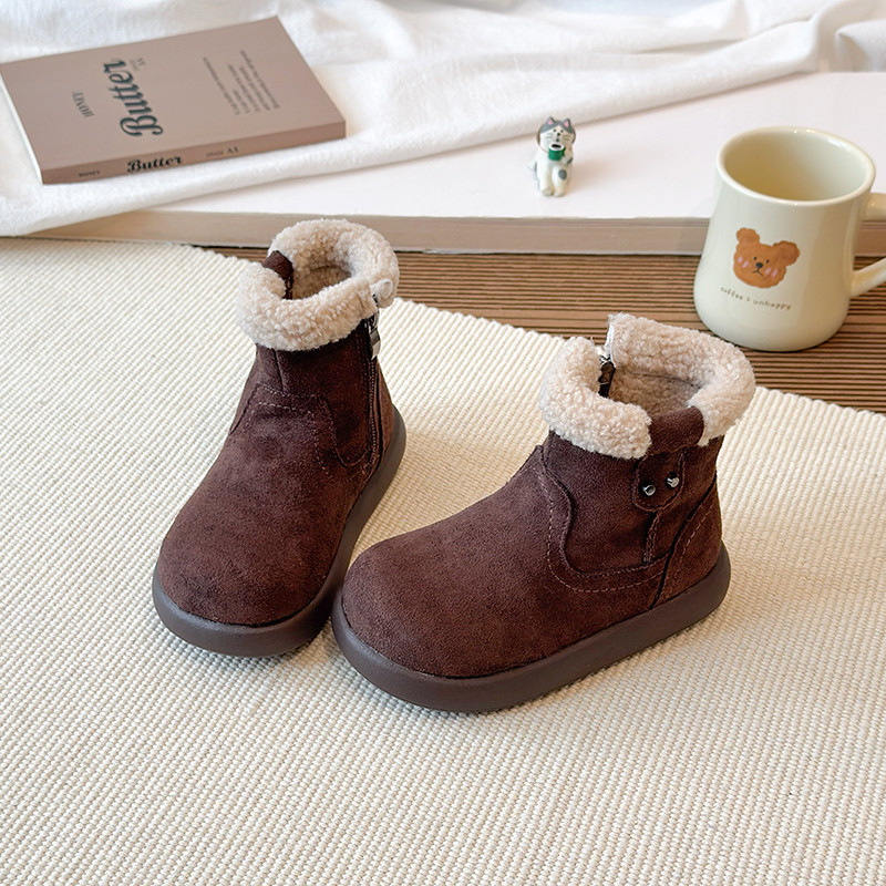 巴布豆女童棉鞋2025新款冬季儿童加绒保暖雪地靴软底短靴防水防滑