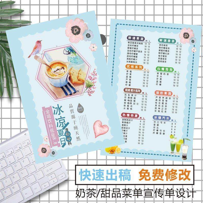 速发奶茶餐饮宣传单设计定制饮品快餐饭店外卖价目表餐饮美食店宣