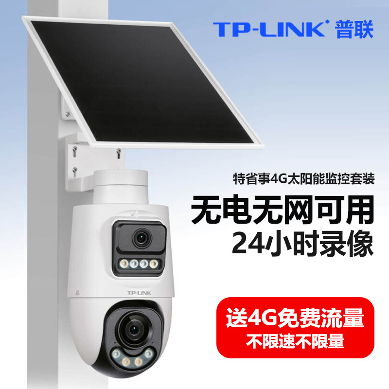 普联TP-LINK太阳能4G全网通免充值监控套装低功耗超长待机30天室外防水全彩摄像头无网无电小球机TL-IPC689XL