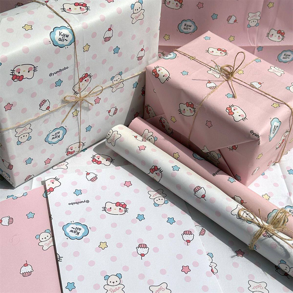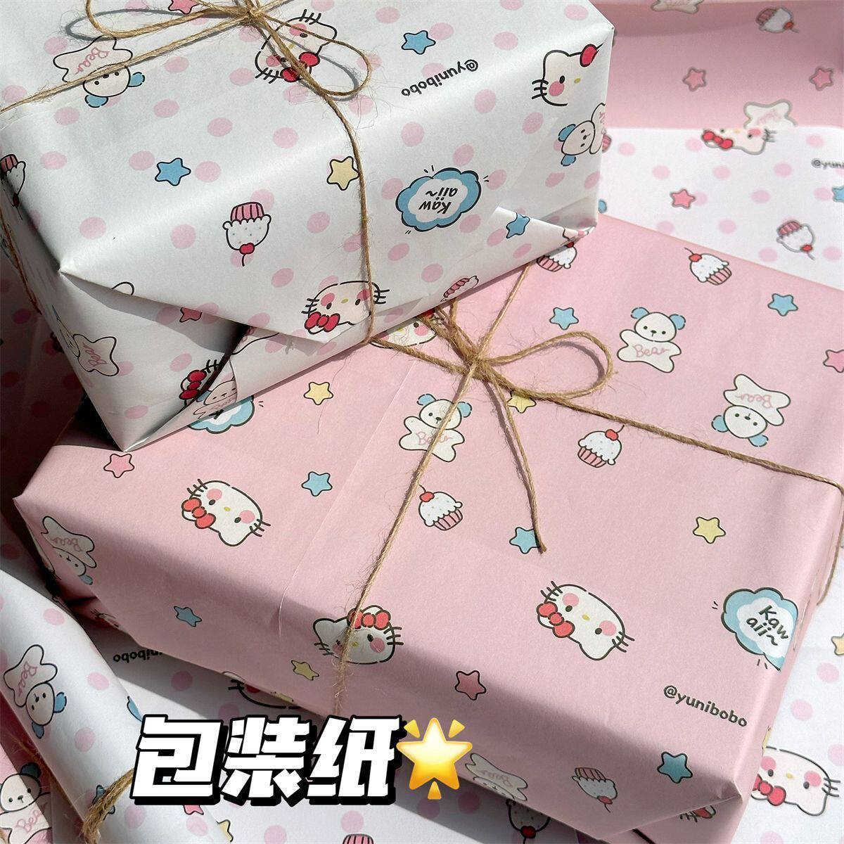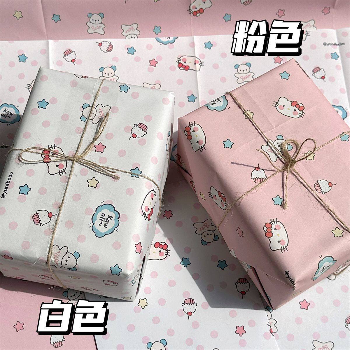 礼物包装纸礼品纸包书皮可爱纸包装纸材料超大尺寸卡通儿童粉色女神节38三八妇女节高级感彩纸生日礼盒打包纸