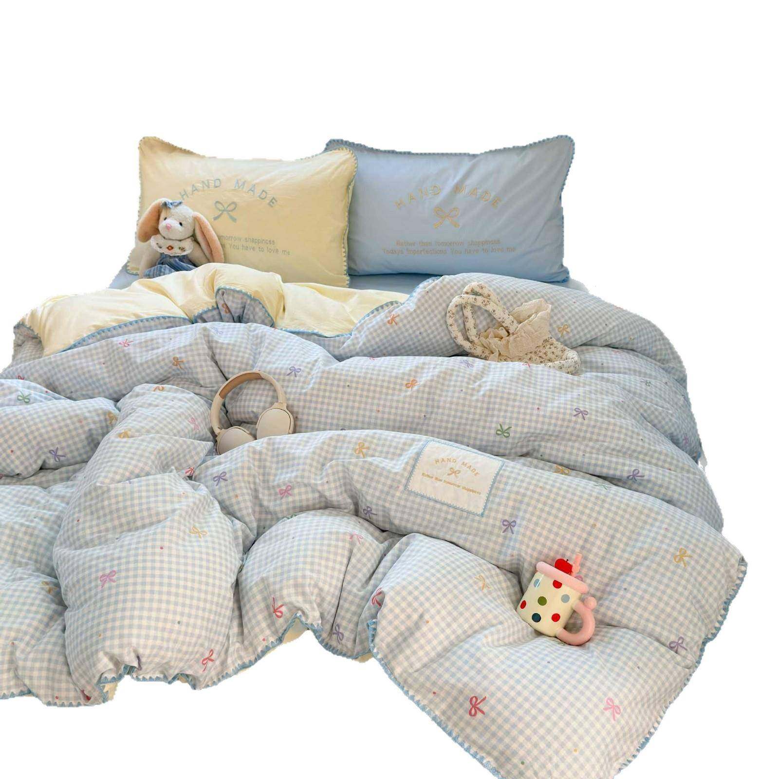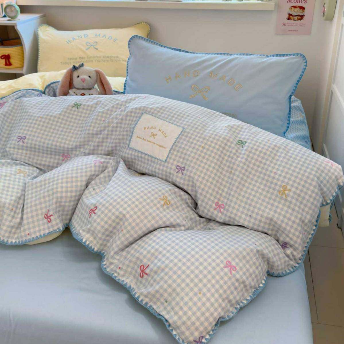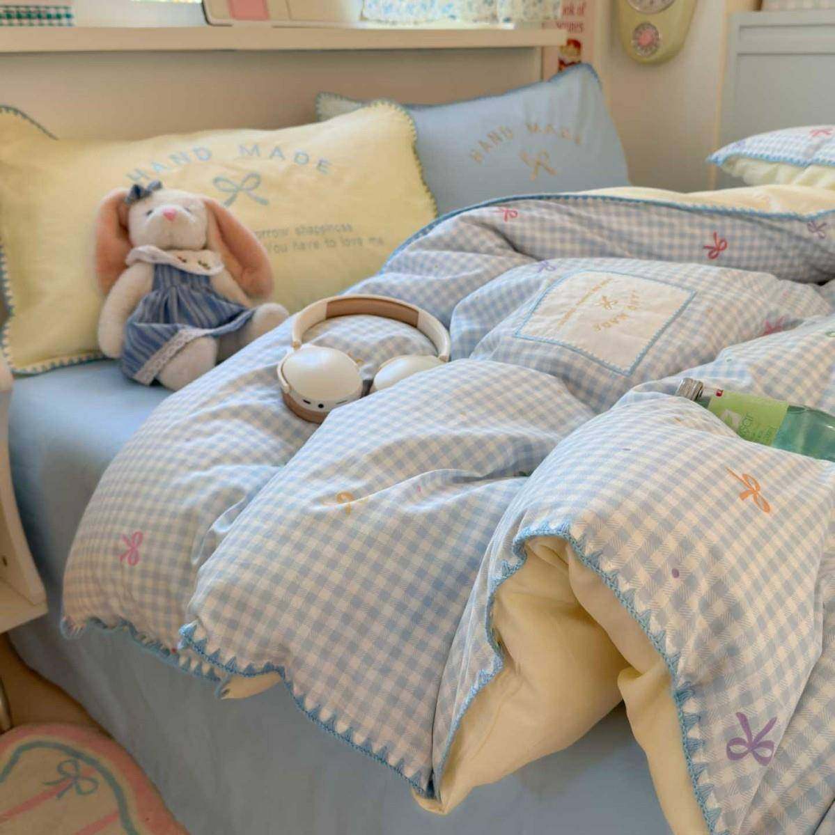 学生宿舍全棉纯刺绣四件套新生开学上下铺床垫枕芯被芯懒人套件