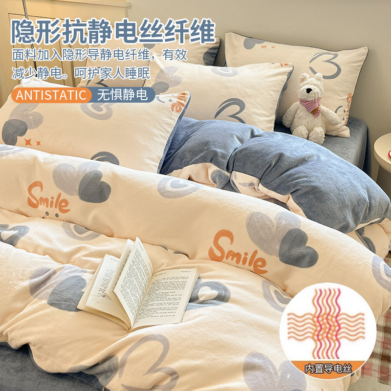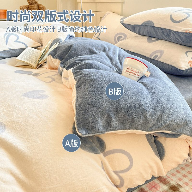 冬季加绒被套单件牛奶绒珊瑚绒宿舍单人单独毛绒被罩1.5米四件套3