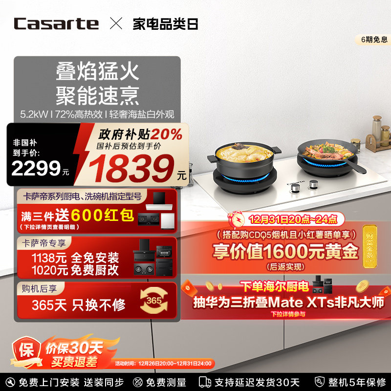 卡萨帝揽光小炫风燃气灶煤气灶家用灶台猛火灶炉灶天然气灶CDZ5U9