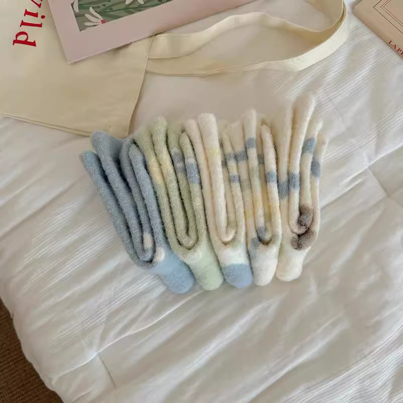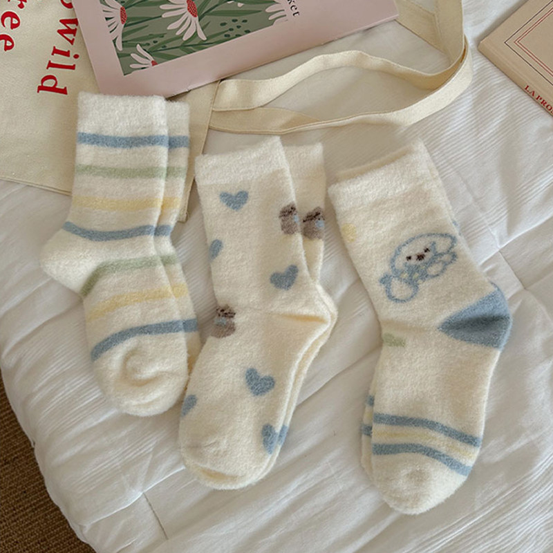 卡通水貂绒袜子女秋冬季加绒加厚保暖中筒袜可爱毛绒居家睡眠长袜