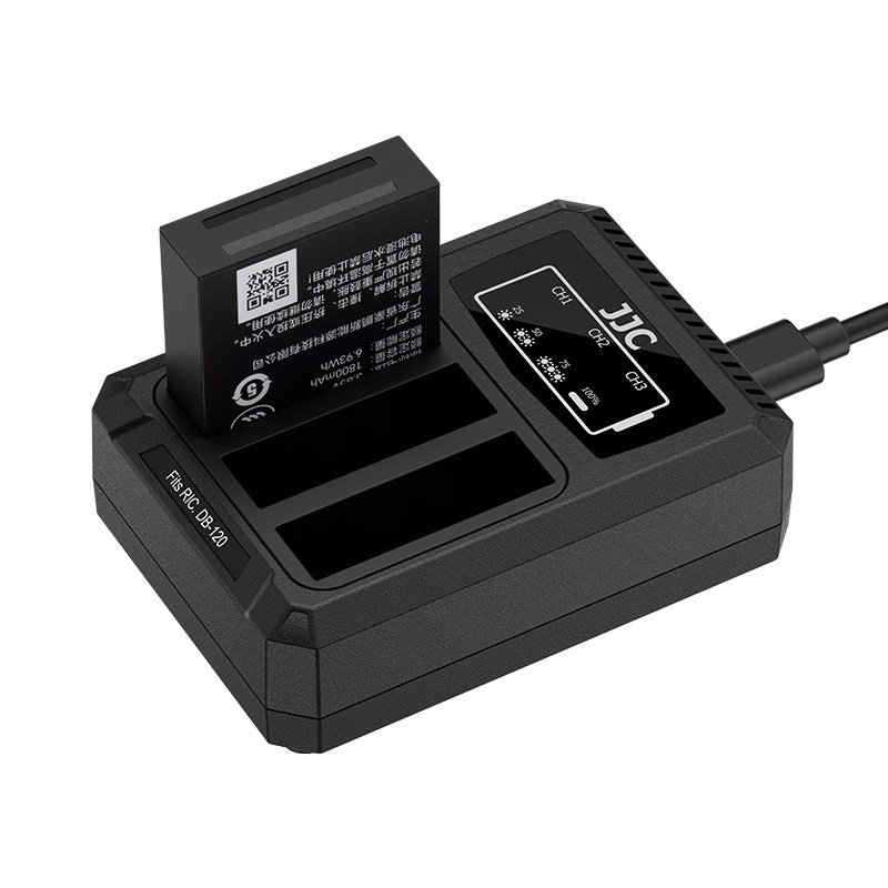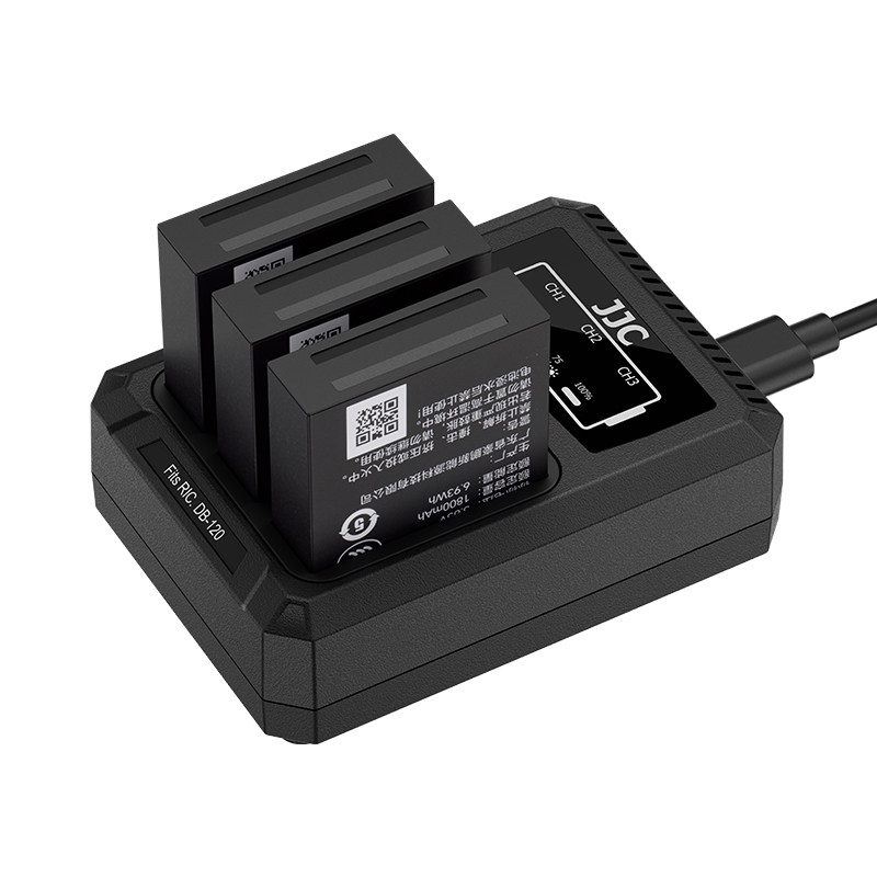 JJC DB-120电池充电器 适用理光GR4充电器 Ricoh GR IV相机座充 db120 三口充电底座 支持原装电池 续航配件