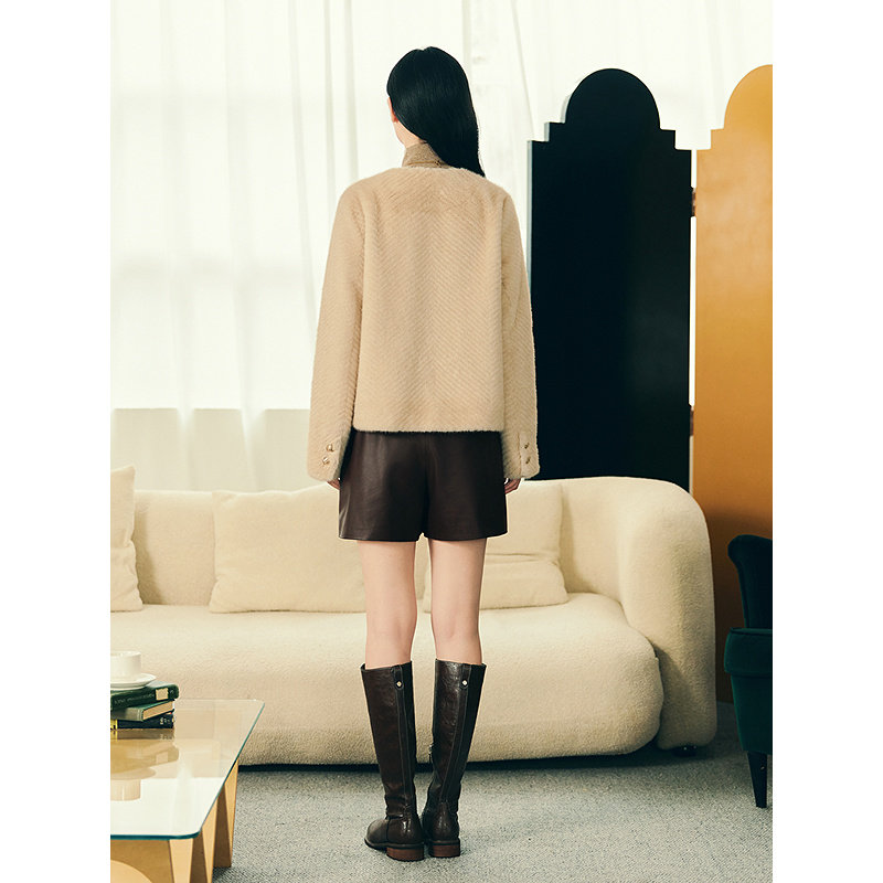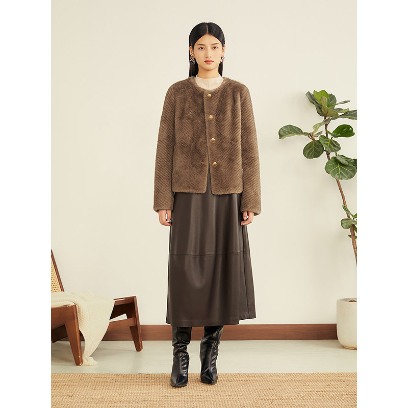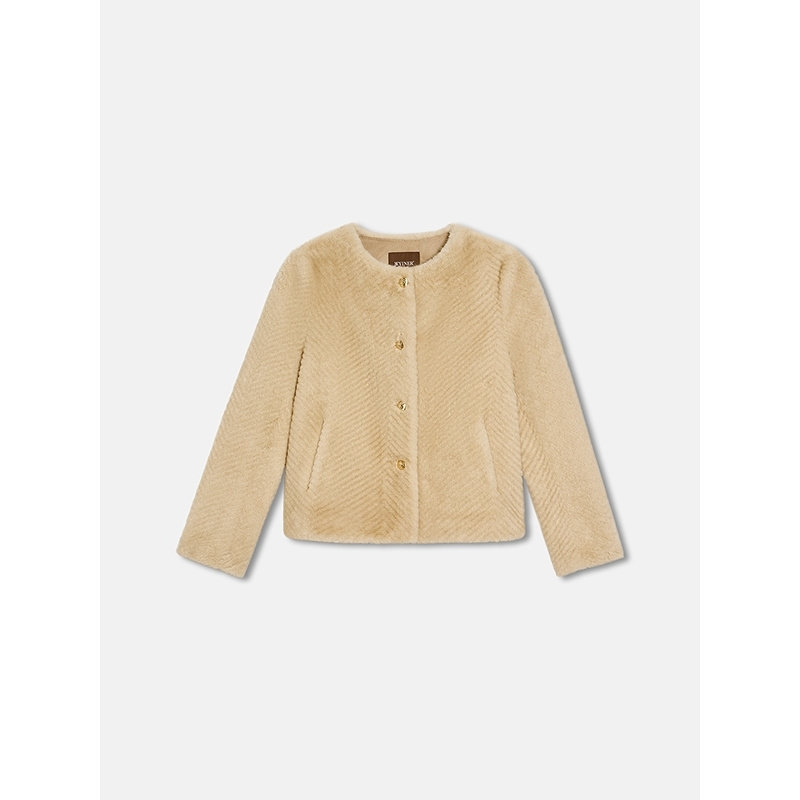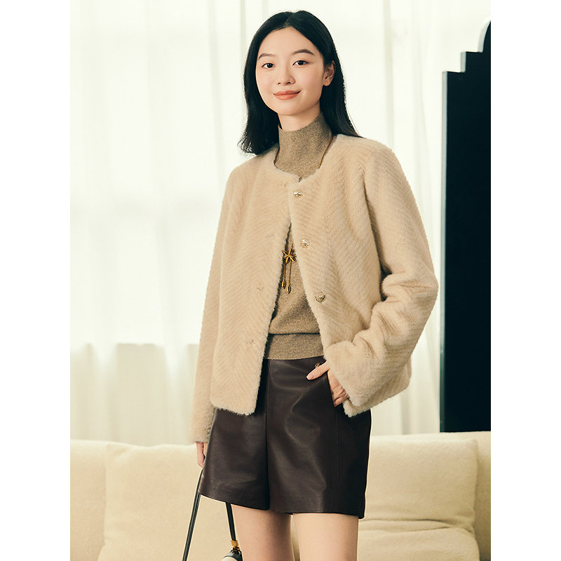 YINER音儿专选2025冬季新款法式复古人字纹H型短款环保皮草外套