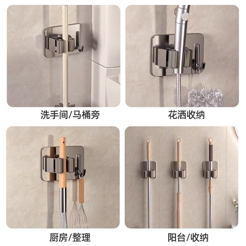 拖把挂钩免打孔卫生间收纳钩子粘钩承重挂架强力粘胶壁挂无痕夹