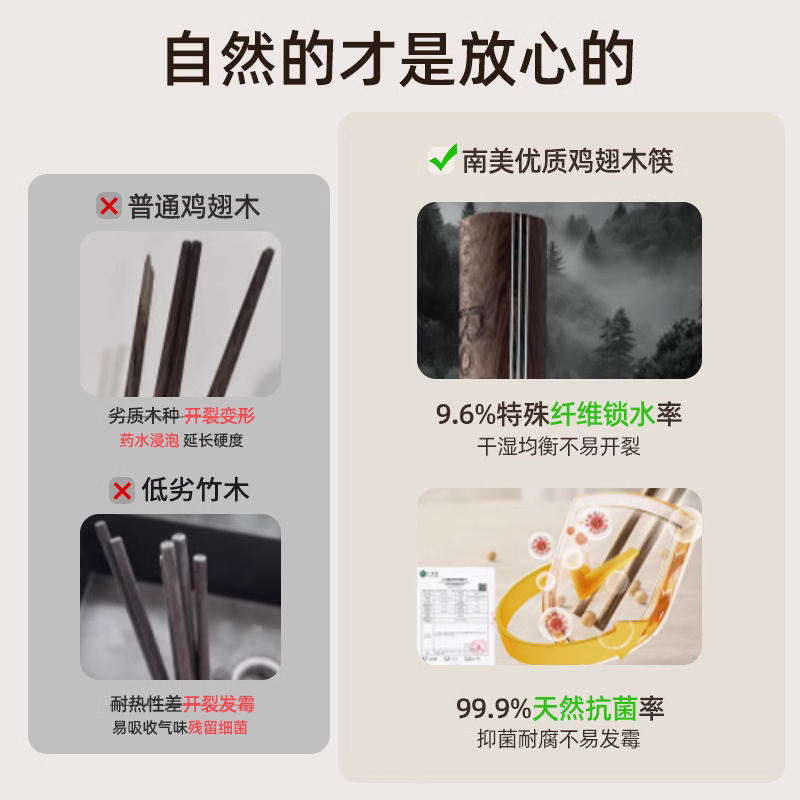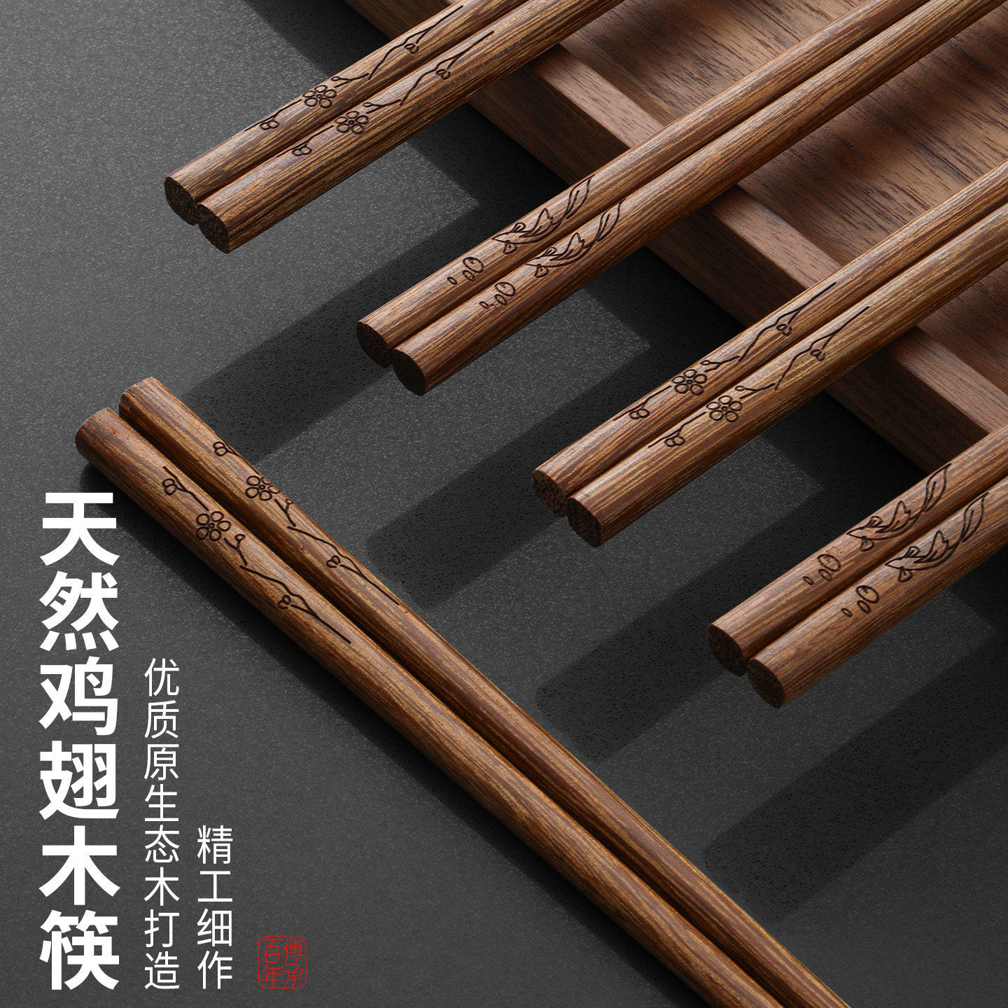 筷子家用高档抗菌防霉实木鸡翅木无漆无蜡快子防滑耐高温家庭专用