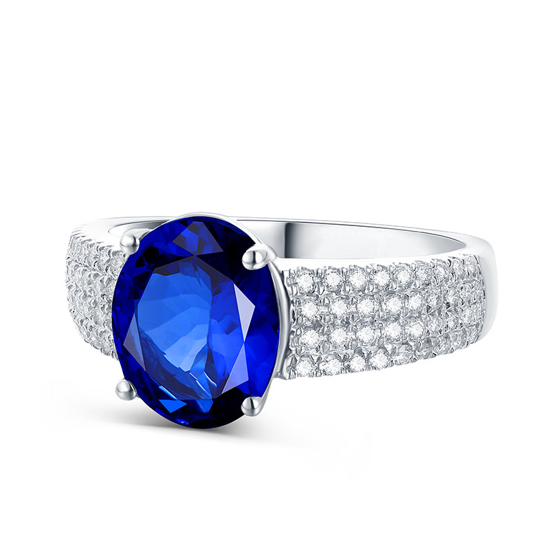 蜜安琪 0.92~2.39克拉天然坦桑石戒指 彩色宝石镶嵌 钻石女戒